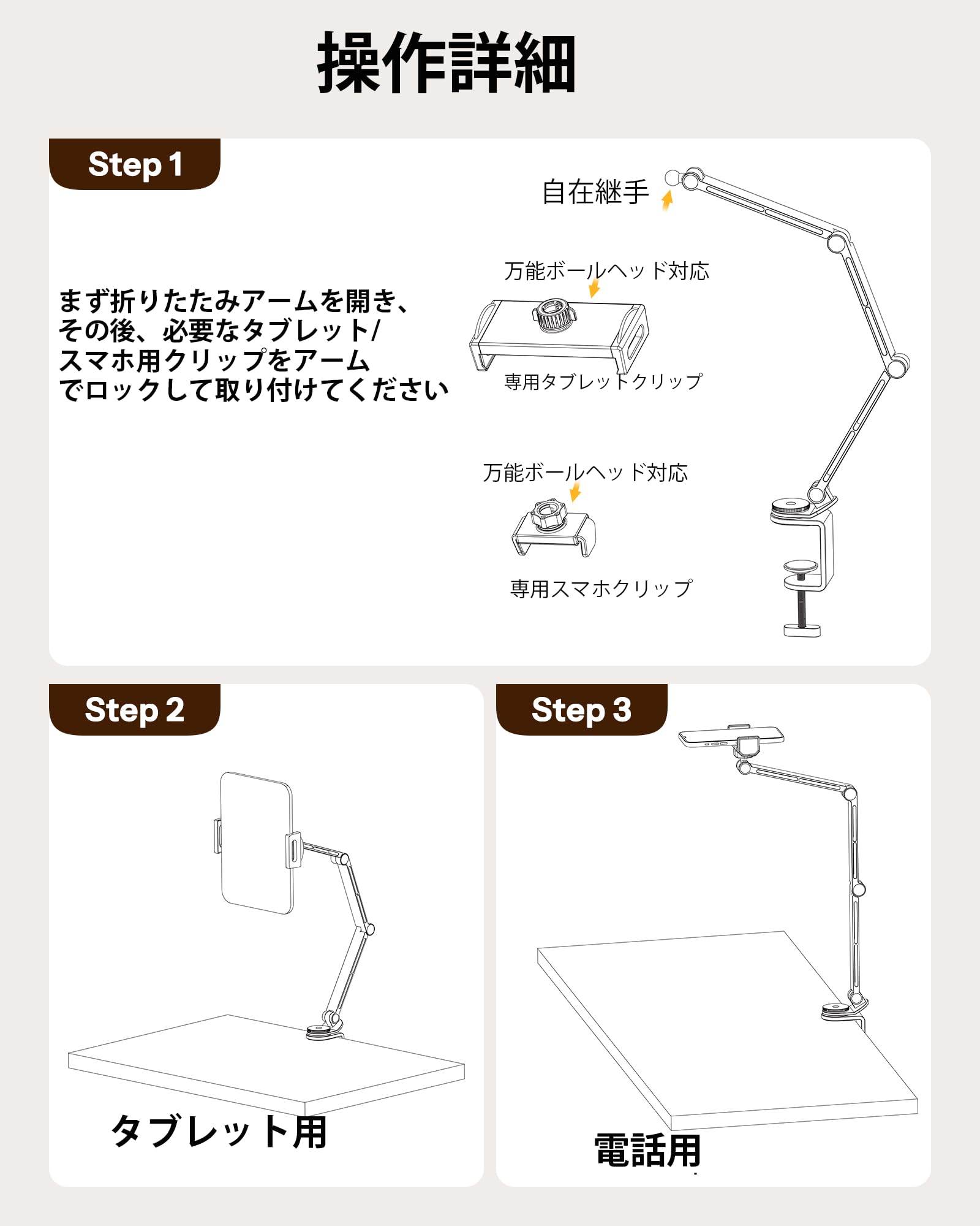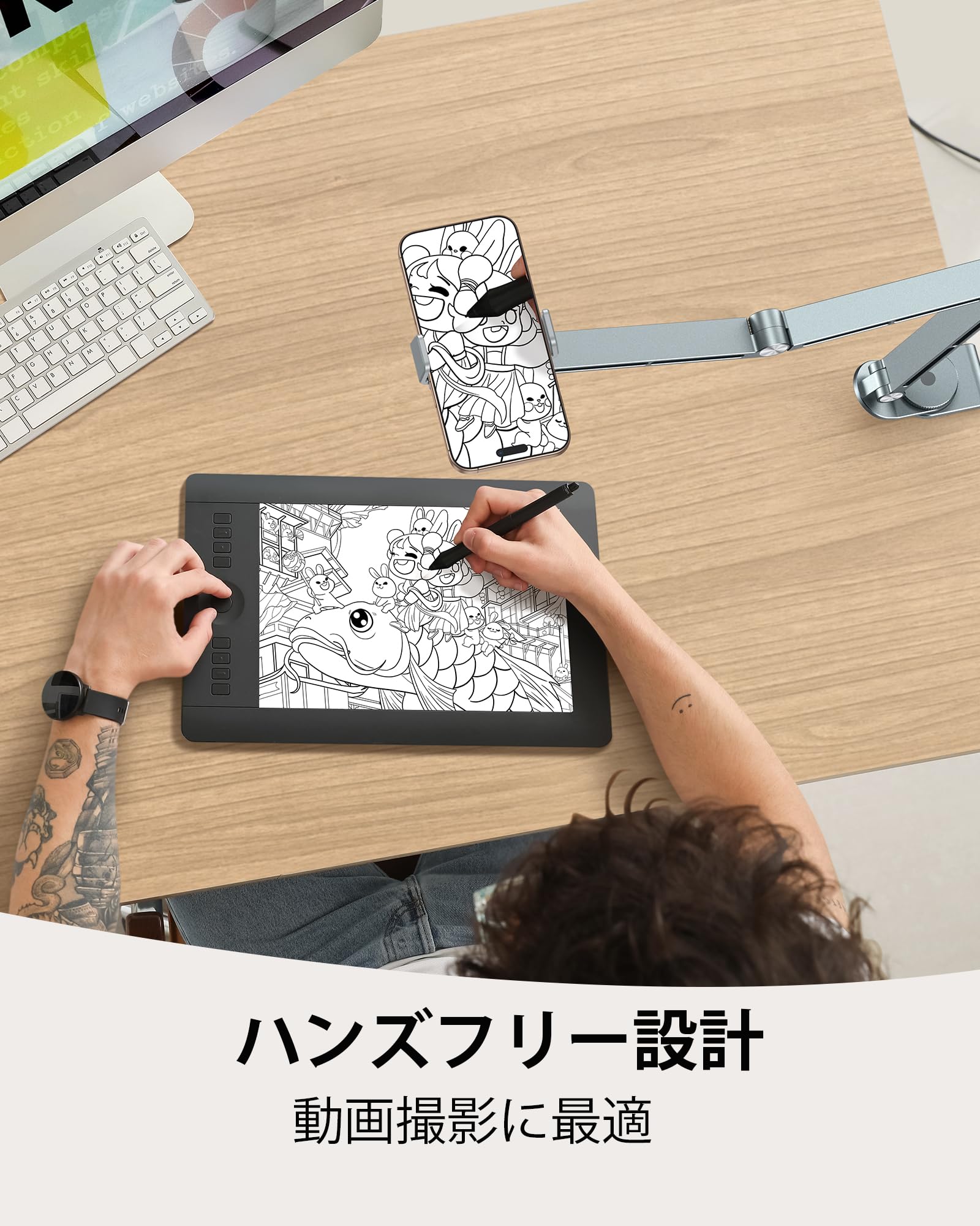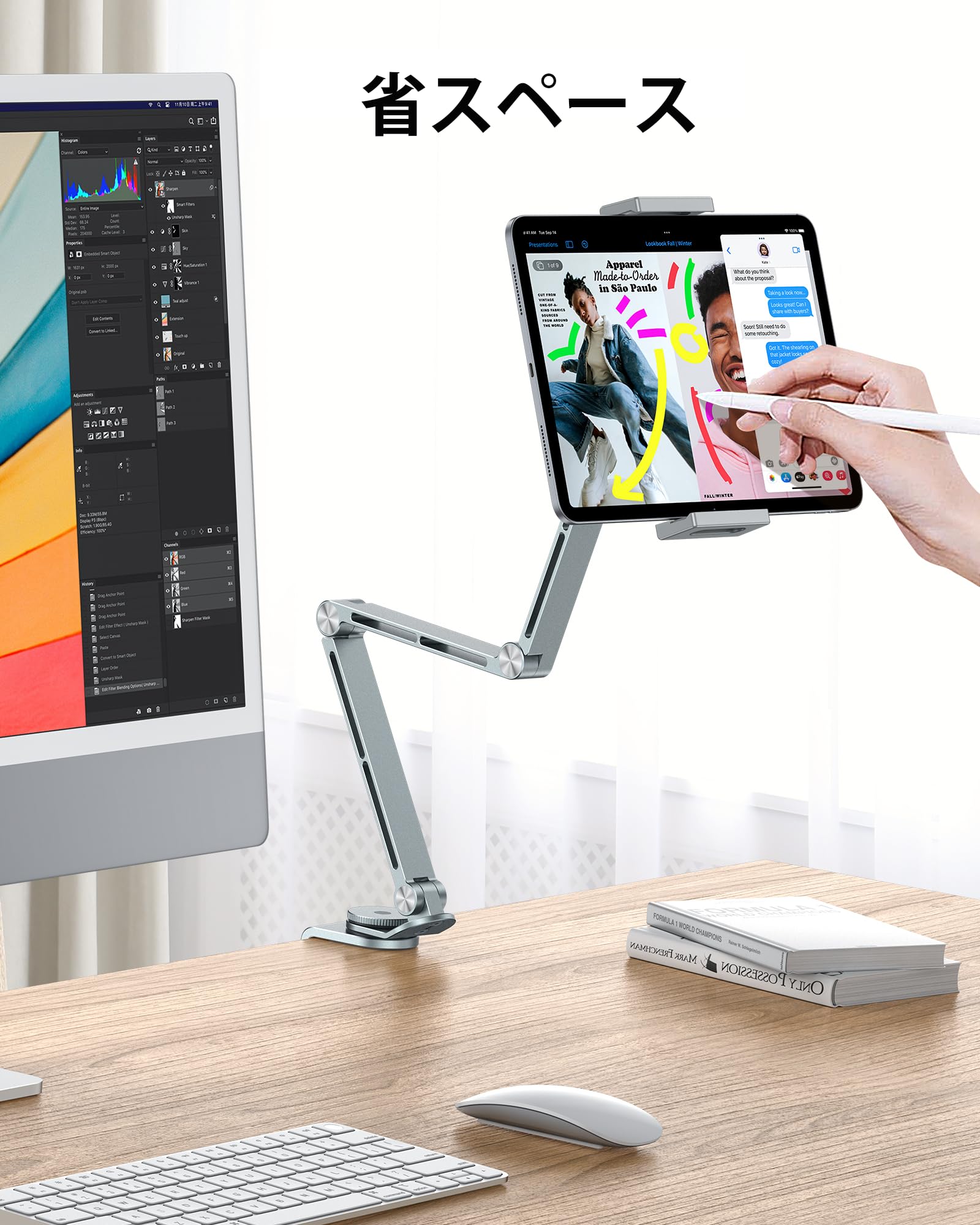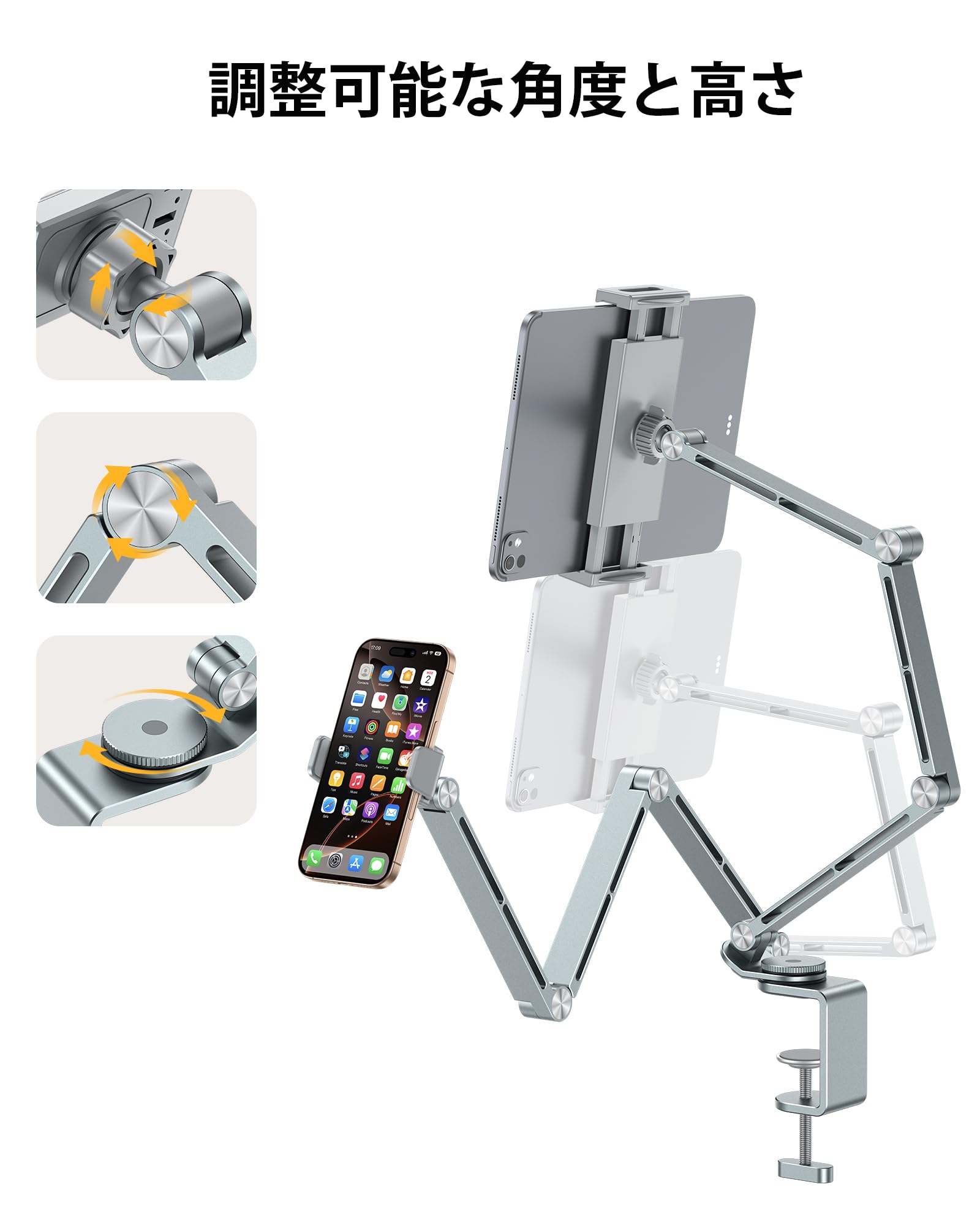 ZenCT タブレットスタンド スマホ&タブレット ホルダー アーム 縦置き クリップ式 NS、ipad、iphone、Android、Nintendo Switch対応 4.7-12.9インチ 360度回転可能 ブラック CT081