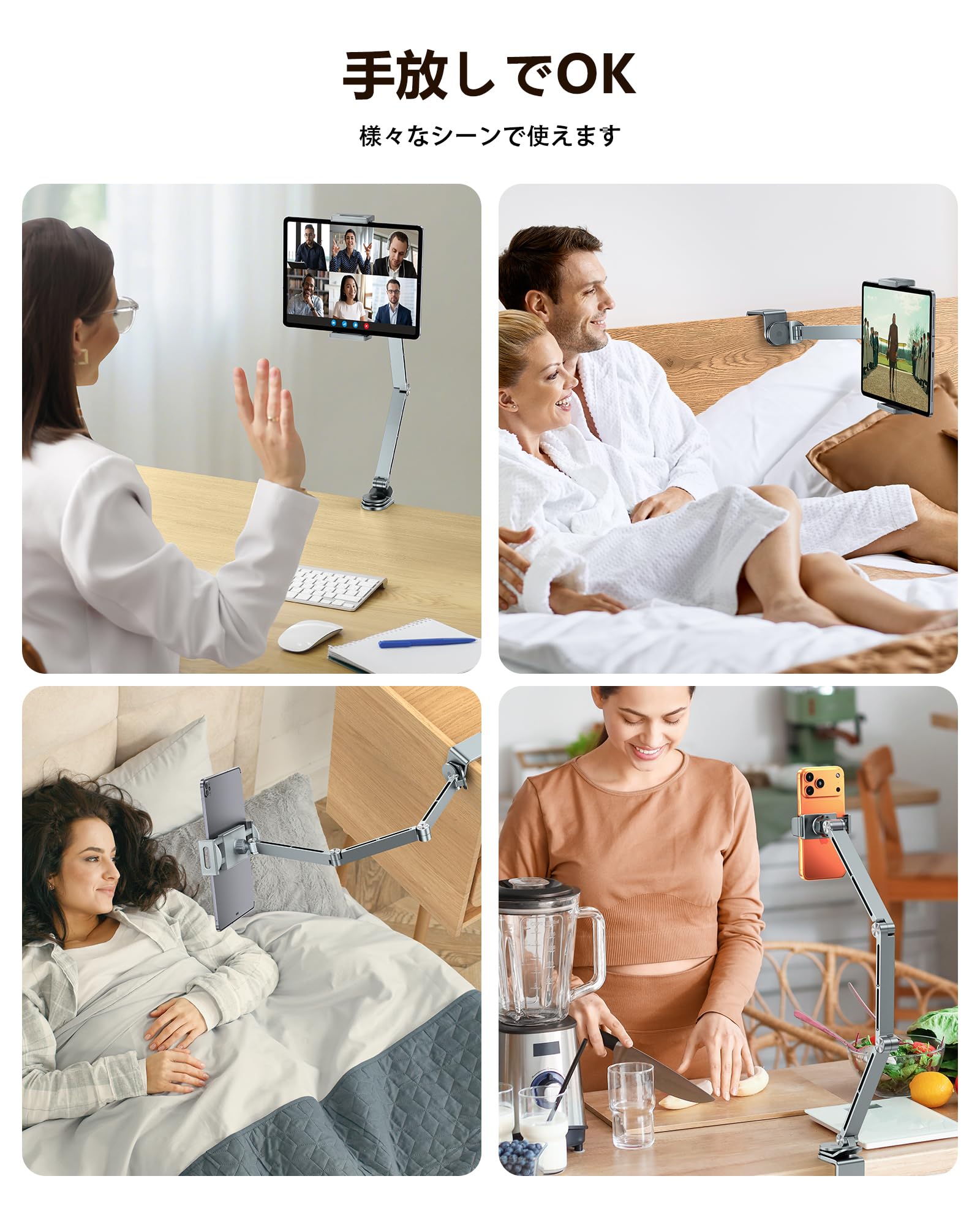 Lomicall タブレット 寝ながら アーム スタンド, フレキシブル アーム ホルダー, タブレット用 ベッドサイド アーム スタンド : タブレット 仰向け, 寝たまま タブレット 固定 アーム, クランプ式, 立て, 角度調整, tablet flexible arm holder, ベットスタンド, ごろ寝, 台所 キッチン, タブレット対応(4.7~11''), ipad 2022, ipad 10 第十世代, ipad Air 5, iPad9 第九世代, iPad Air5 4 3 2,
