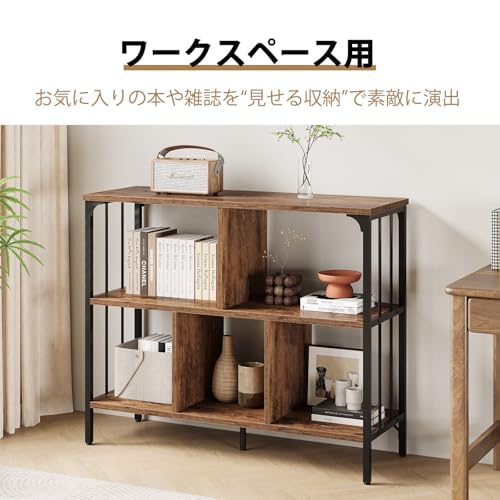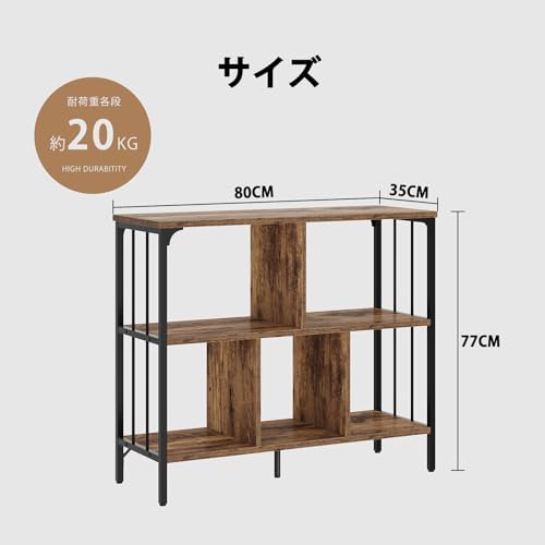 IBF オープンシェルフ 収納ラック 本棚 オープンラック 収納ボックス リビング 棚 ラック 収納 コンパクト ボックス 在宅 シンプル おしゃれ 省スペース 多用途 整理棚 レコードプレーヤースタンド 3段 5マス (ビンテージ, 80cm)