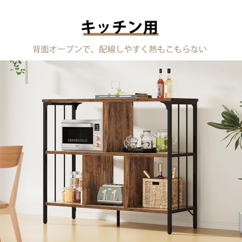 棚 ラック おしゃれ 北欧 木製 オープンシェルフ 幅100cm オープンラック ZHZJ アイアンシェルフ スチールラック 奥行30 本棚 スリム レンジラック 食器棚 ディスプレイ 木目 収納棚 3段 ウッドラック サイドボード 組立簡単 キッチン/リビング/寝室/玄関/洗面所 適用