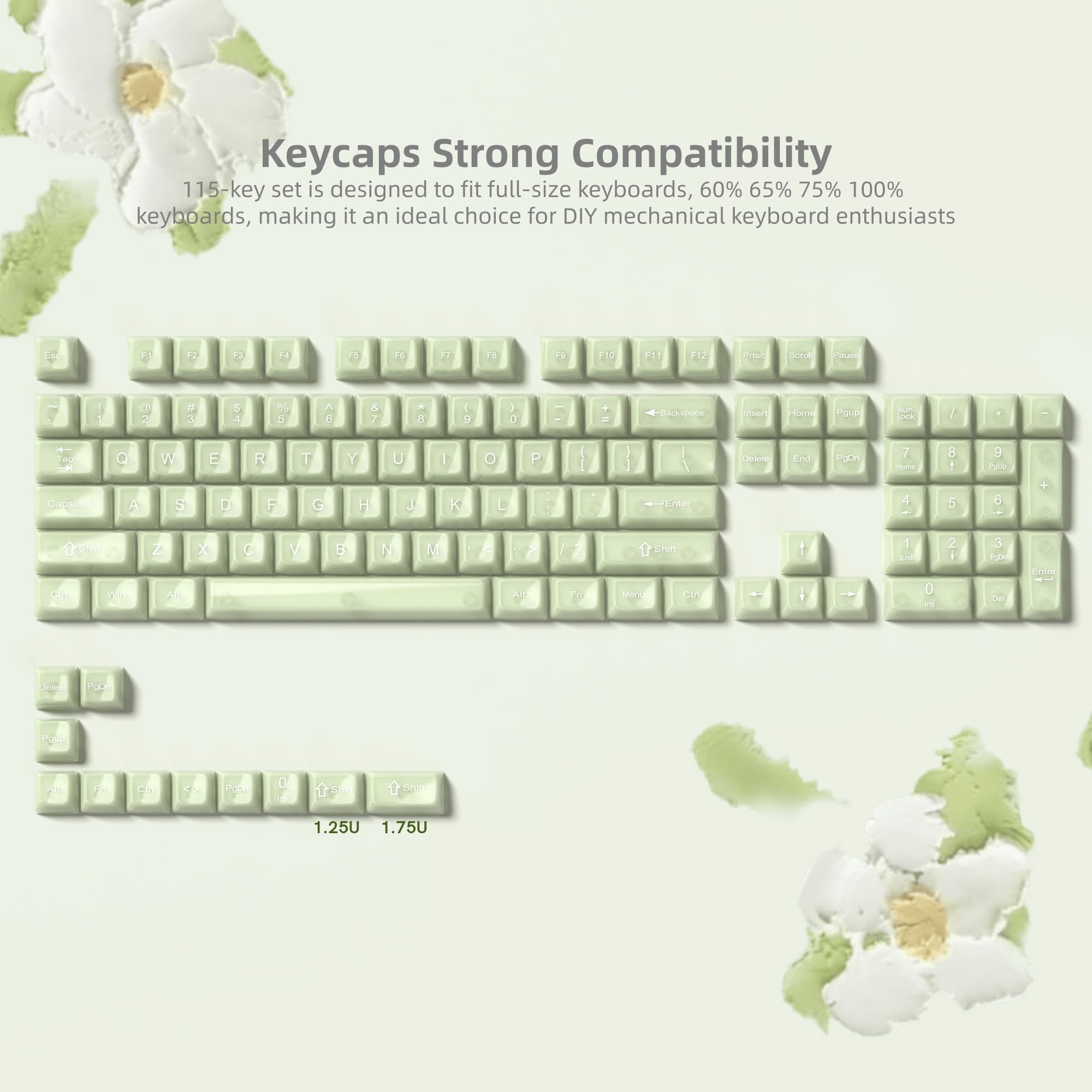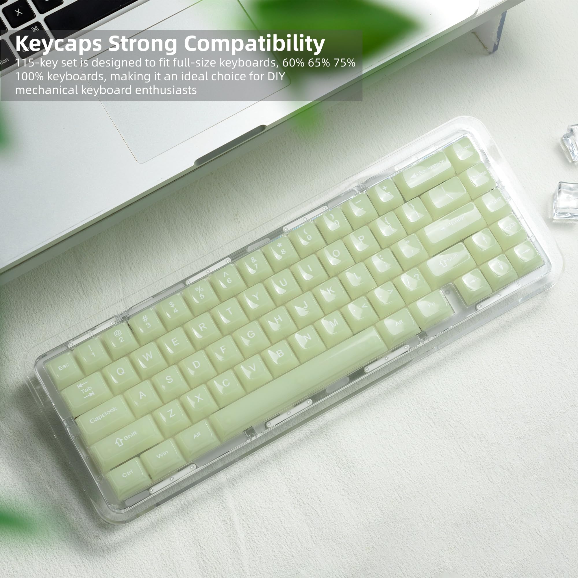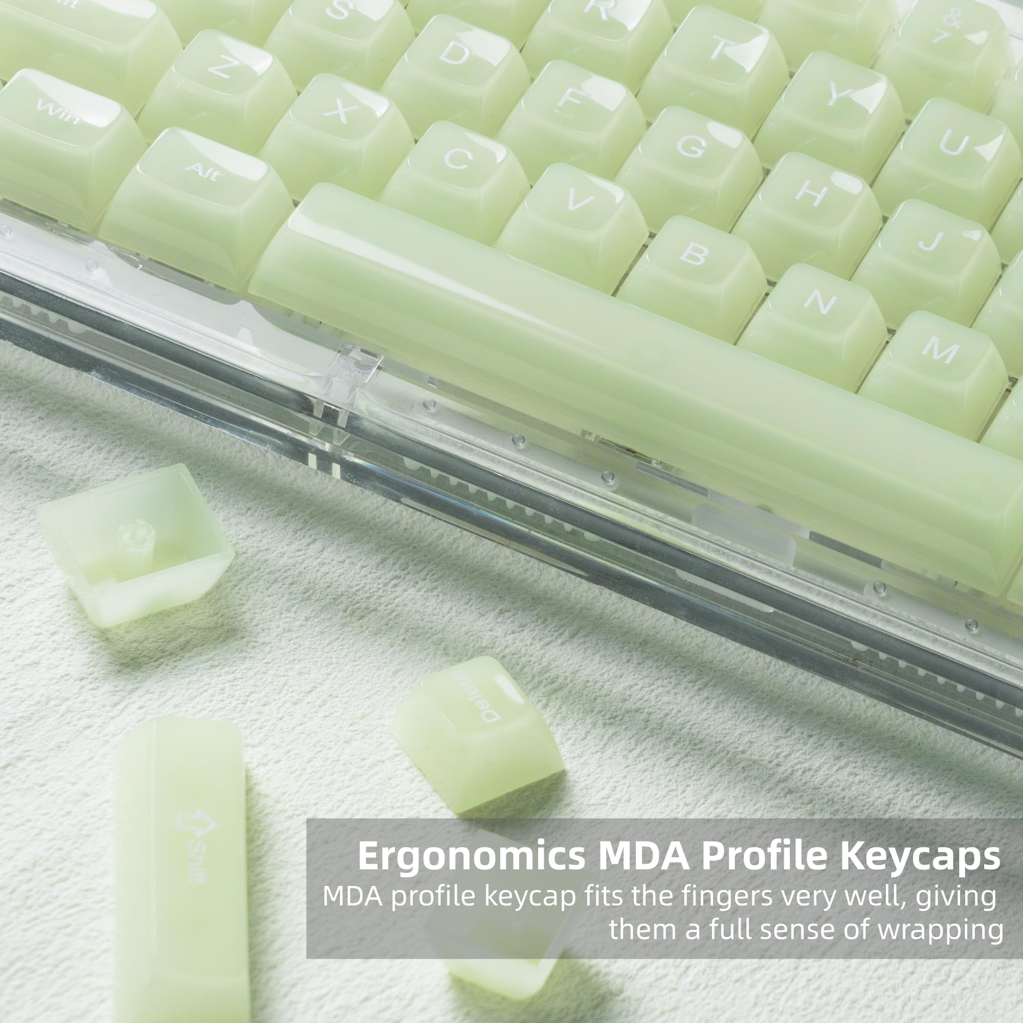 Womier キーボードキーキャップ ゼリー - セラミックキーキャップスタイル、クリアクリーミー抹茶グリーンキーキャップ 透明カスタム 60 65 75 100% Cherry MX、Outemu、Gateronメカニカルキーボード(MDAプロファイル)