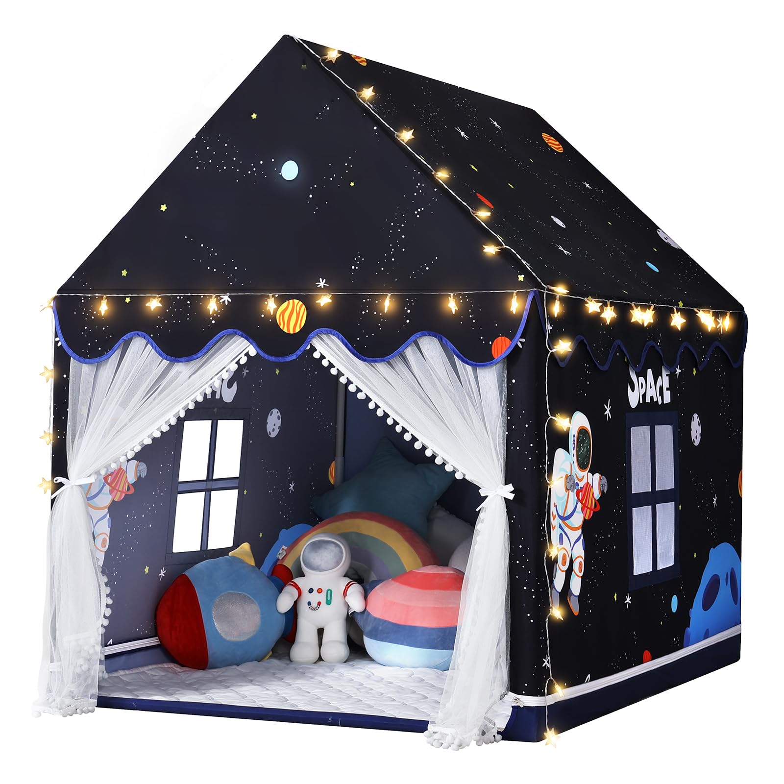 Monobeachキッズテント 子供用テント 室内テント 男の子 簡単に組立秘密基地 折りたたみ式 桃皮調生地 通気メッシュ窓 誕生日・子どもの日・入園祝い・クリスマスのプレゼントに最適 室外/室内遊具 宇宙デザイン
