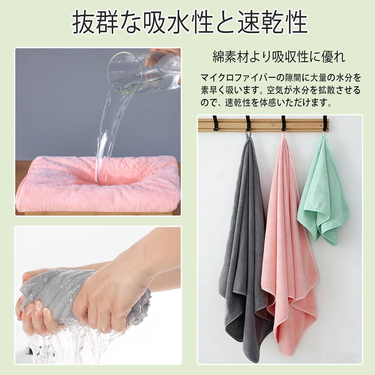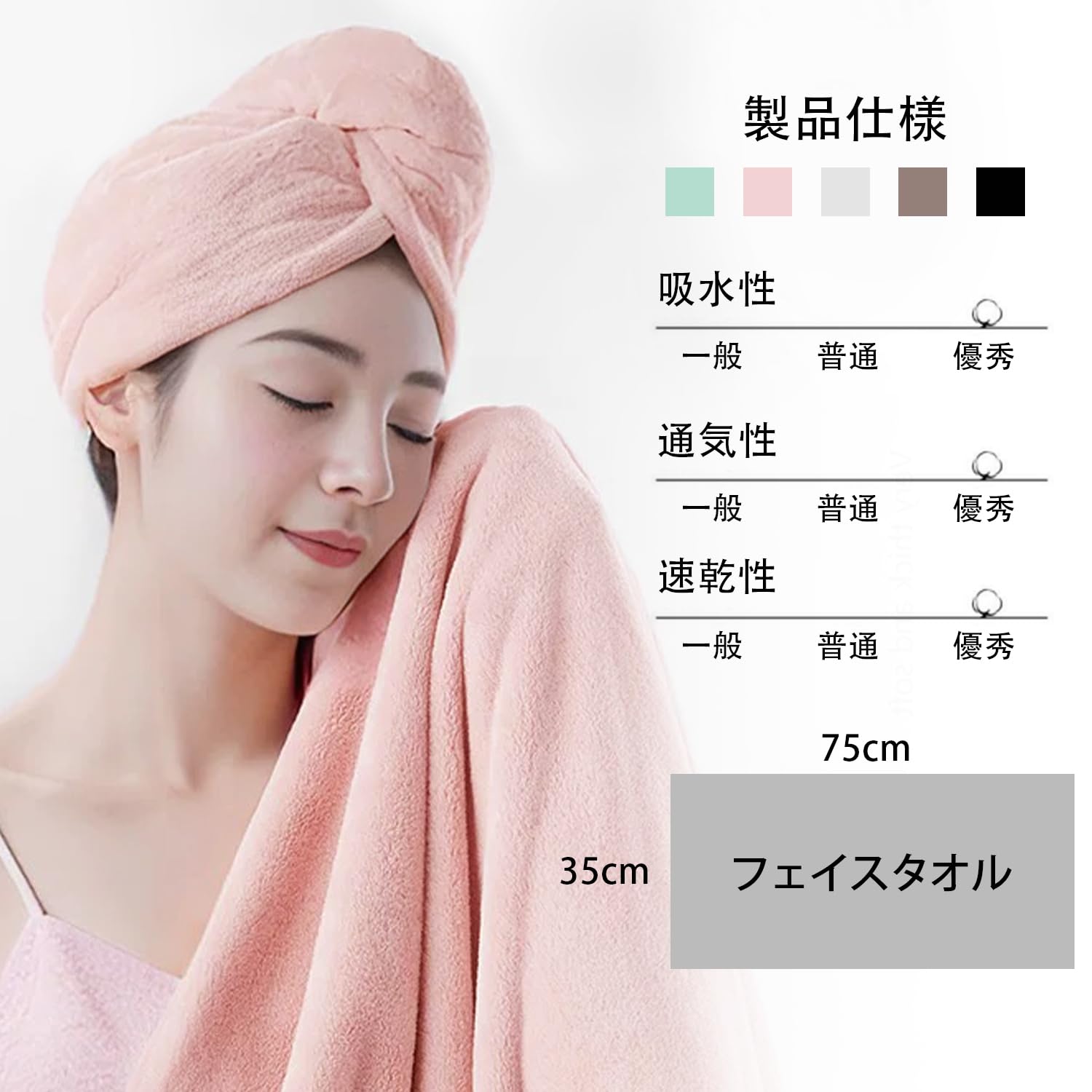 フェイスタオル 10枚セット マイクロファイバー 35X75cm ふわふわ 柔らかい肌触り 高速吸水 速乾 耐久性 抗菌防臭 毛羽落ちしない ホテル仕様 お風呂上がり 家庭用 業務用 (5色)