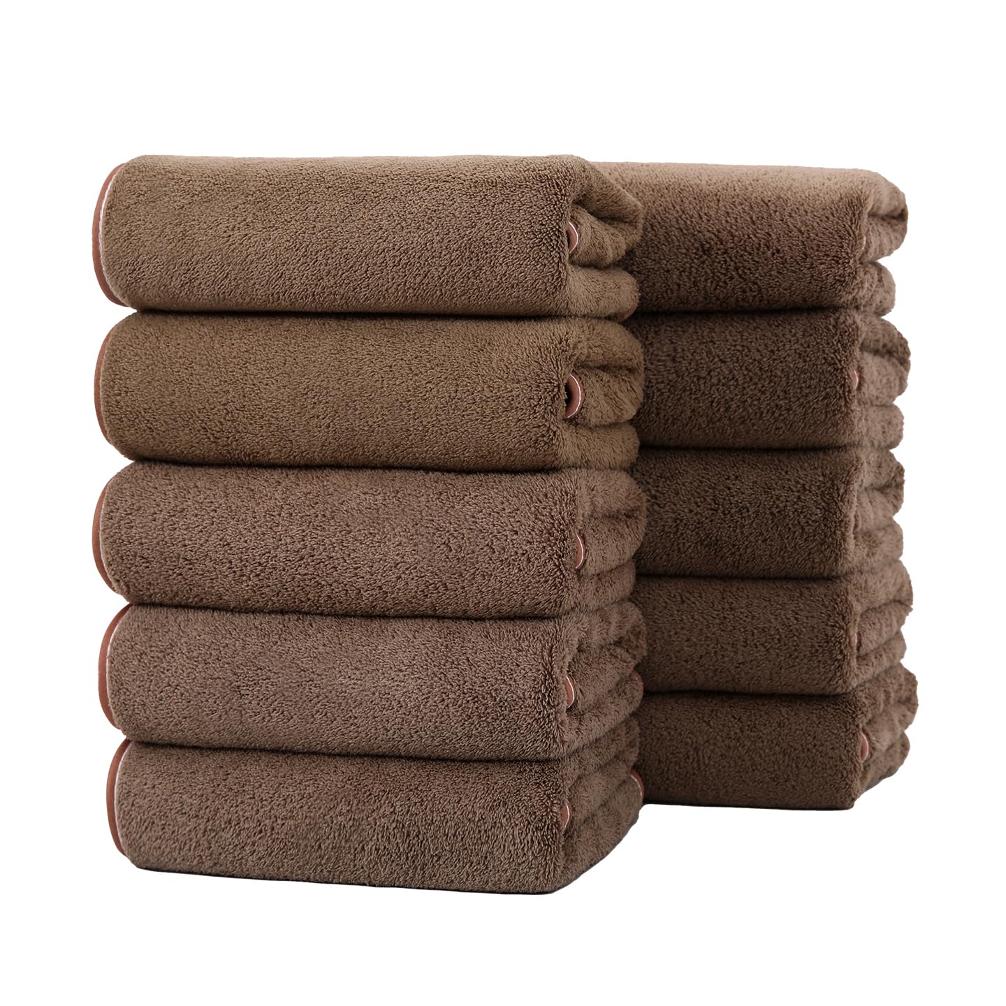 フェイスタオル マイクロファイバー 10枚セット タオル ホテル仕様 35x75cm ふわふわ 瞬間吸水 速乾 耐久性 家庭 業務用 エステ サロン バス用品 新生活 ギフト (ブラウン)