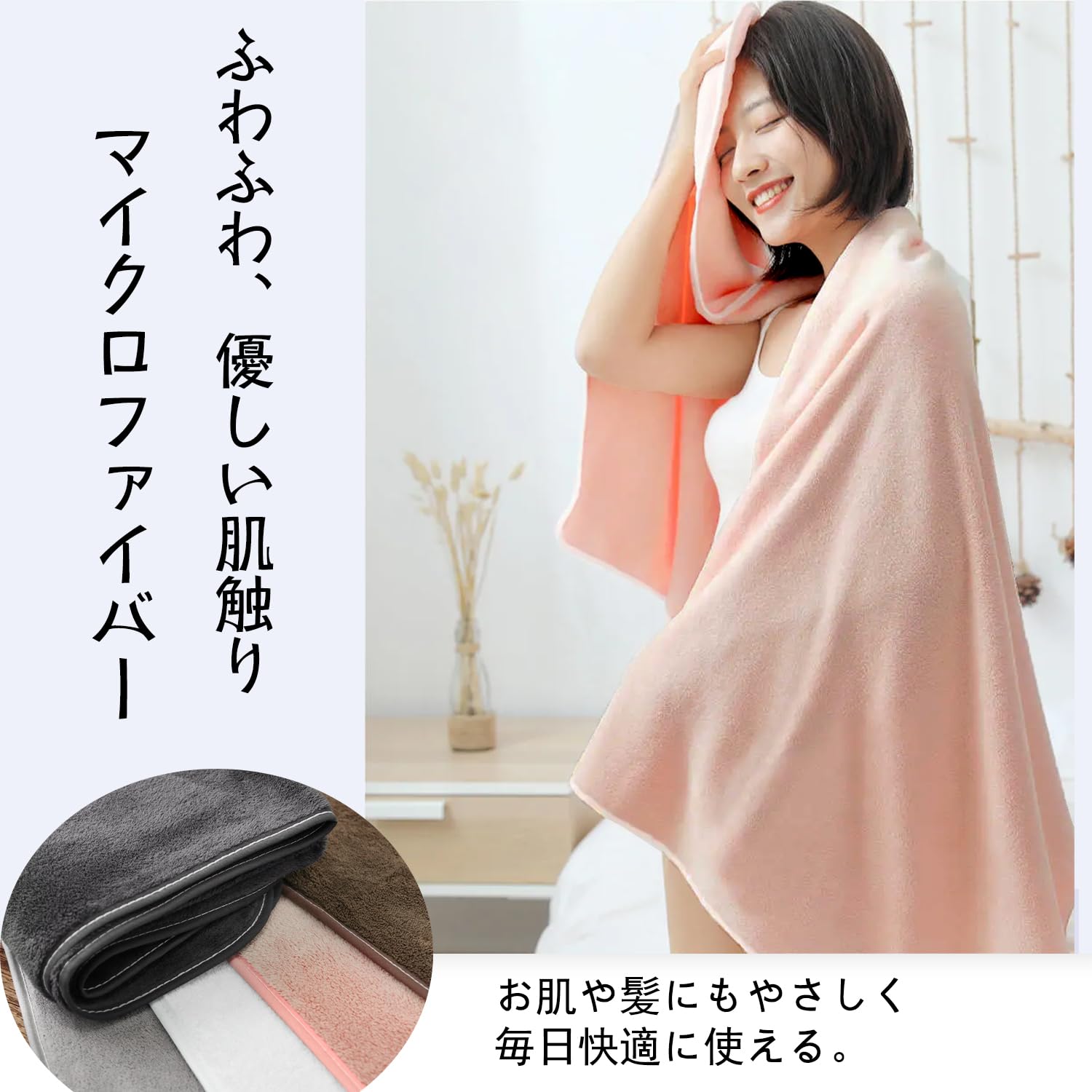 バスタオルマイクロファイバー大判【2点セットピンク65*130cm】 吸水速乾 バスタオルふんわり 肌あたりがホテル 風タオル 即時吸水 室内乾燥 長持ちバスアメニティ