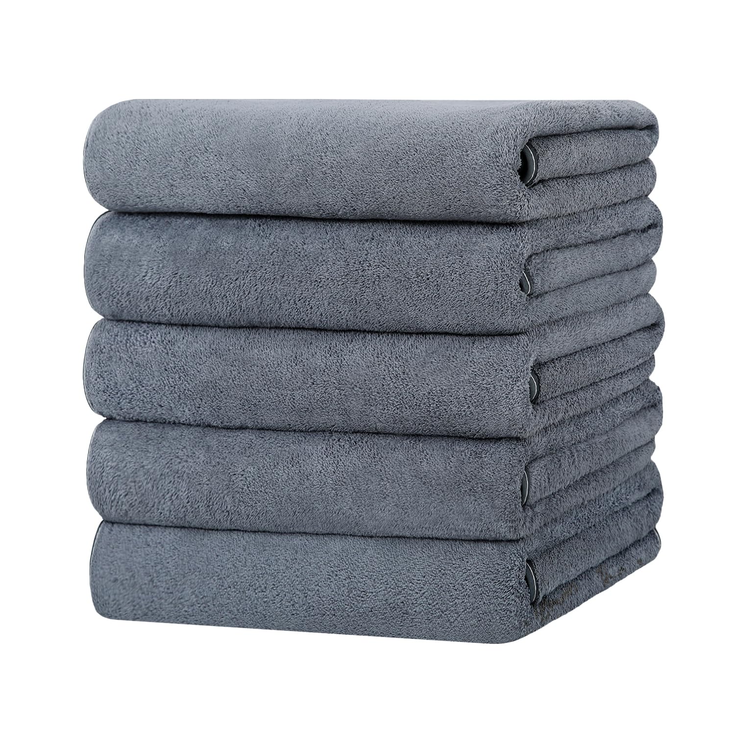バスタオル マイクロファイバー 大判 5枚セット 60×120cm タオル ふわふわ 肌触り 瞬間吸水 速乾 通気 耐久性 抗菌 防臭 人気 家庭用 業務用 (グレー)