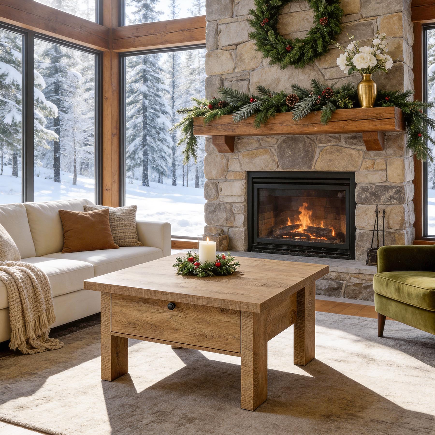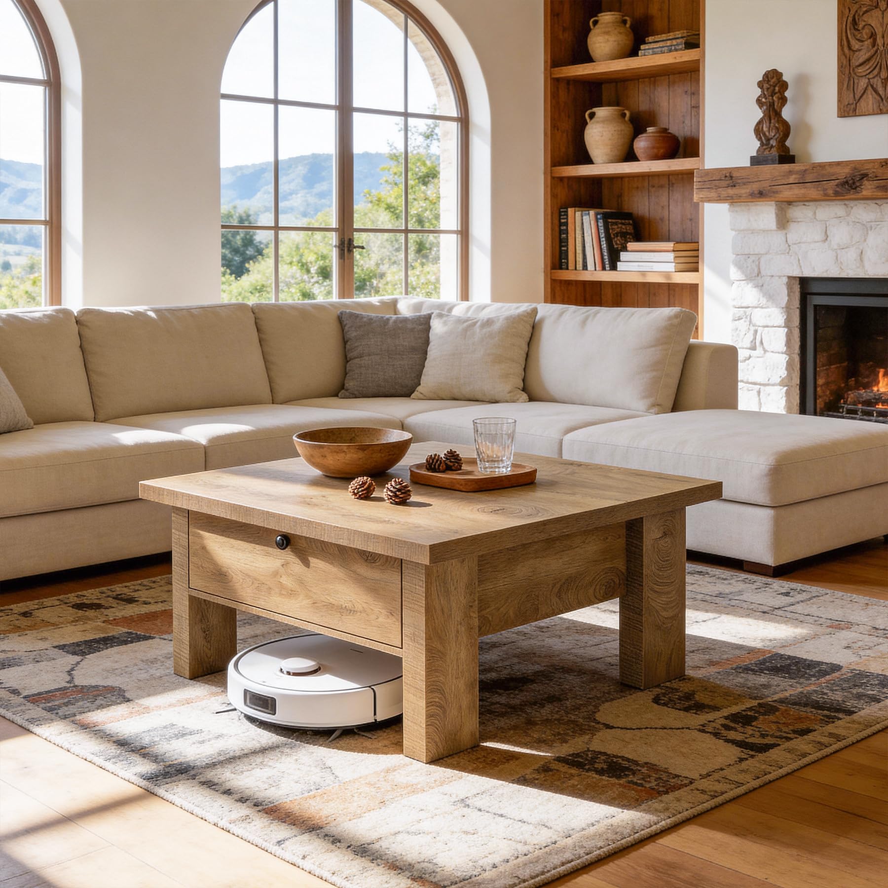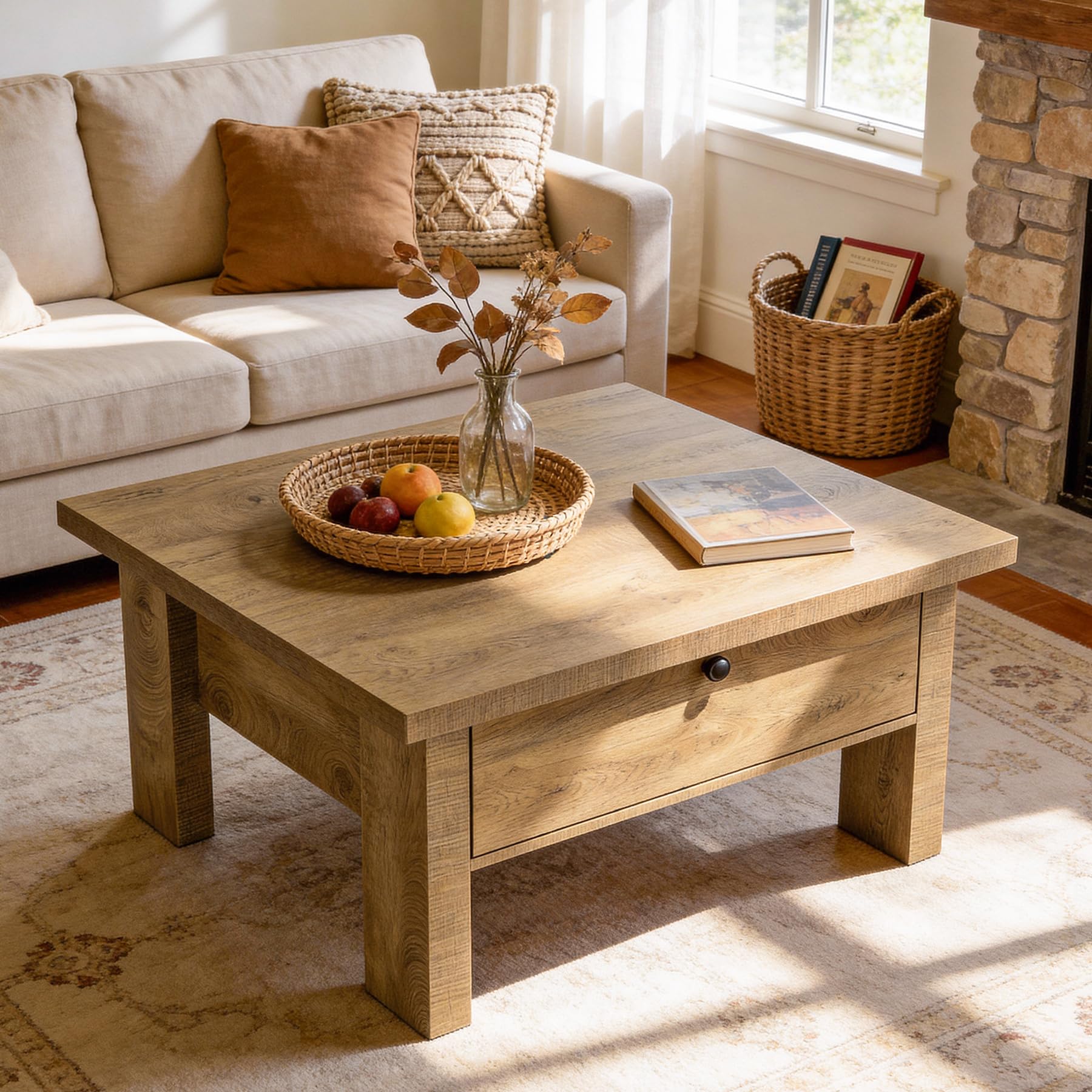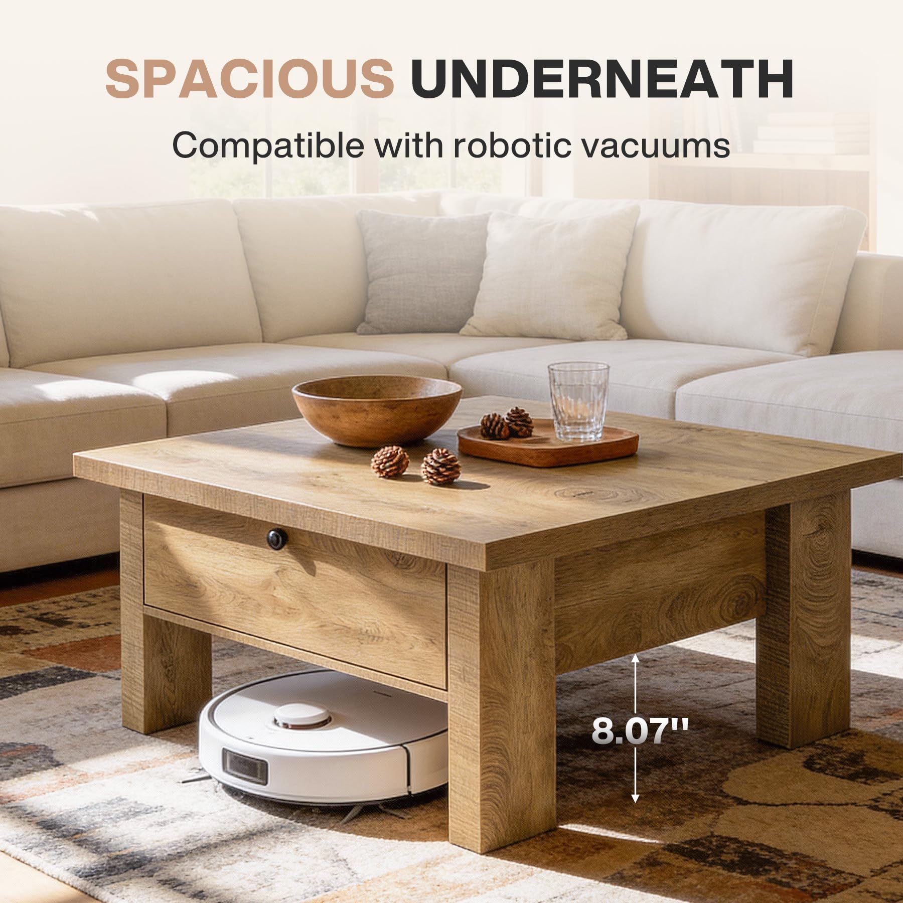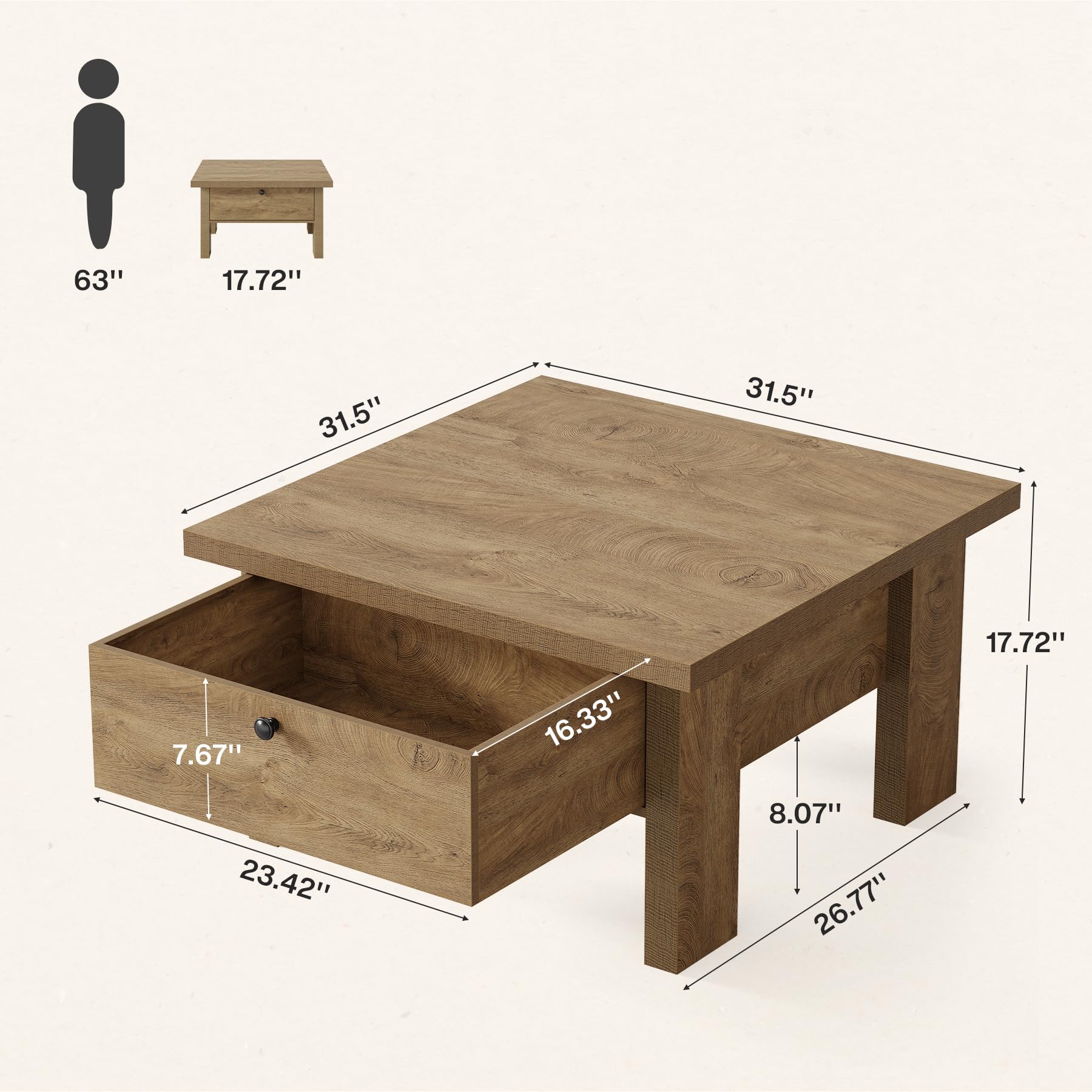 Tribesigns リビングルーム用コーヒーテーブル 31.5インチ 正方形 コーヒーテーブル 小さなスペースの収納付き (ブラウン)