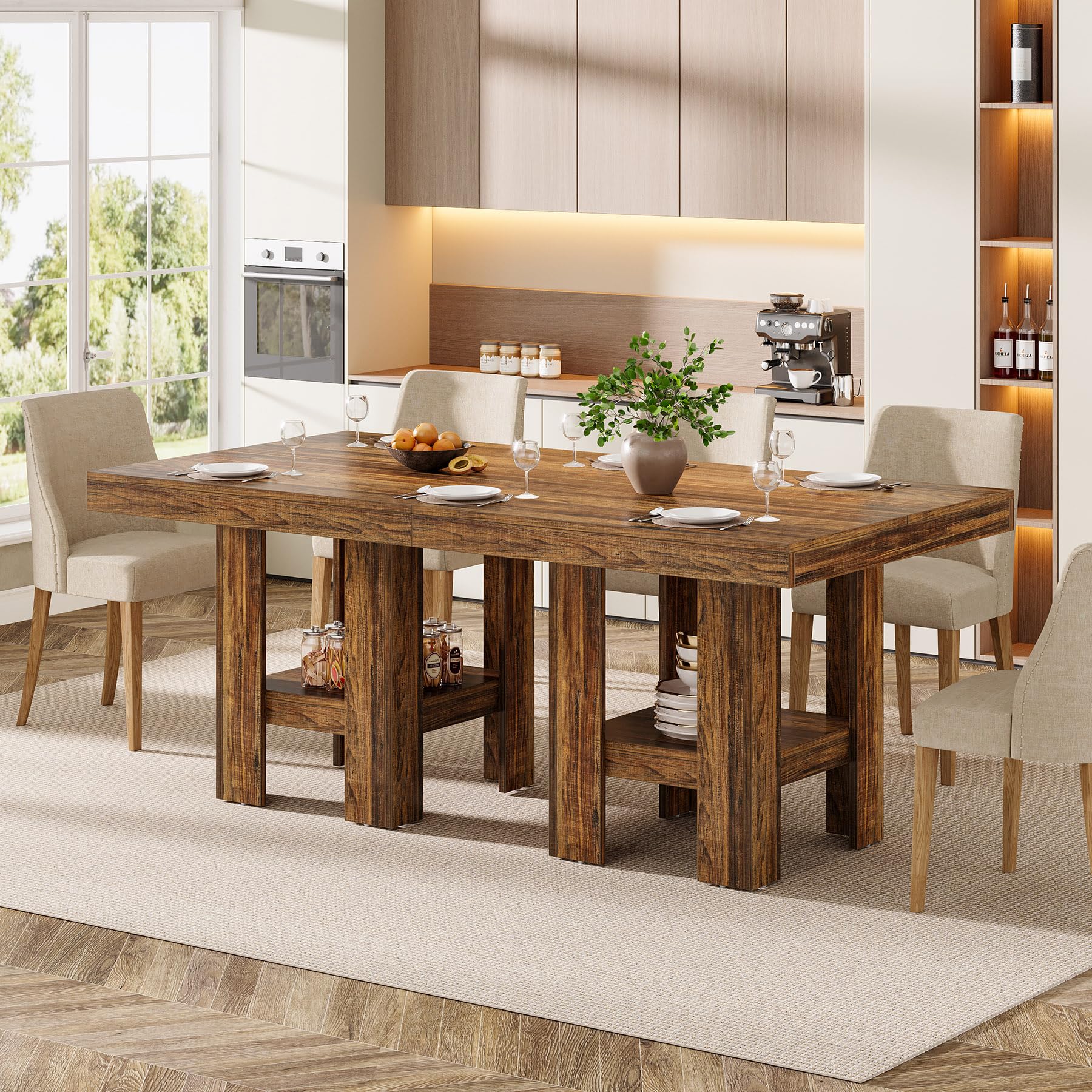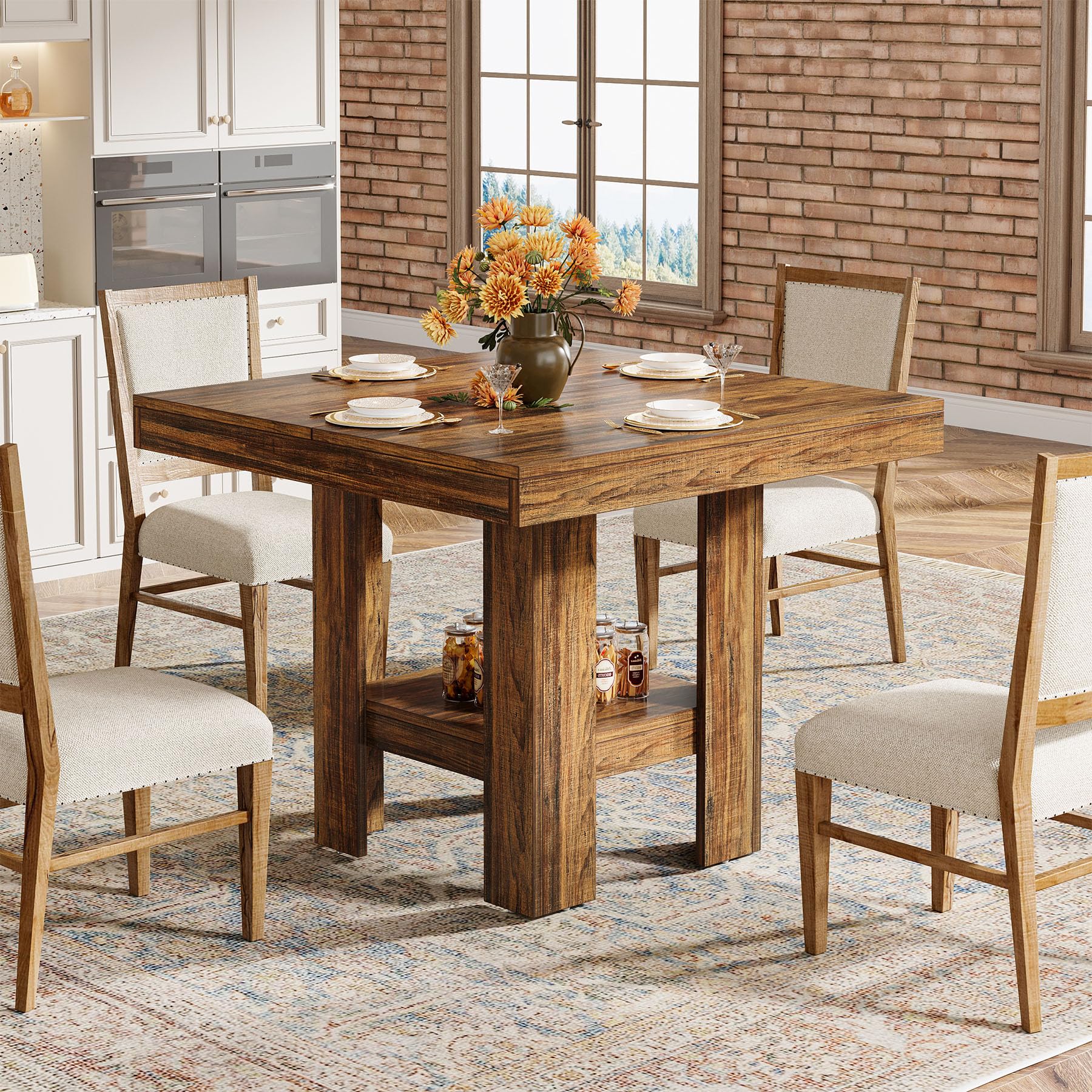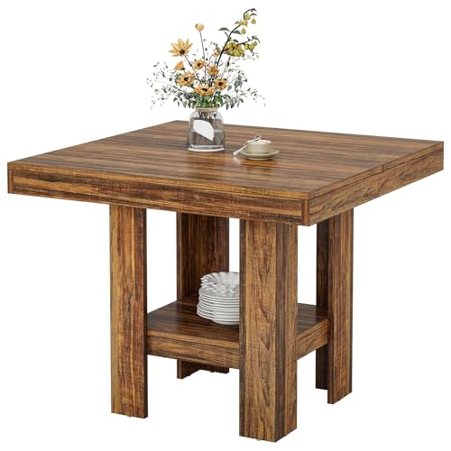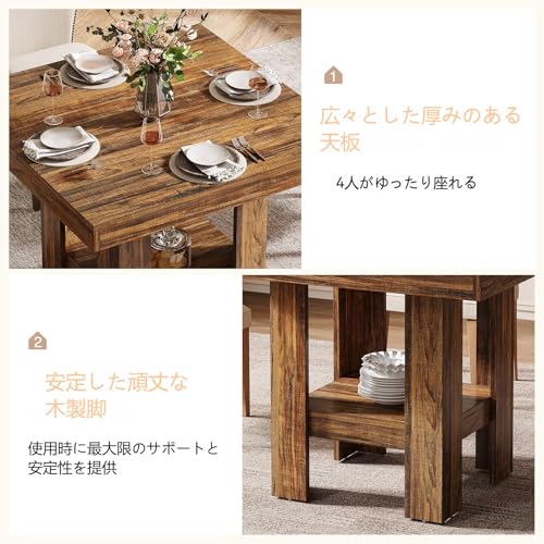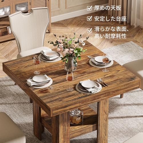 Tribesigns 31.5インチ 正方形 ダイニングテーブル 4人用 小さなキッチンテーブル 棚付き コンパクトなダイニングルーム家具 アパート オフィス リビングルーム レストラン ブラウン