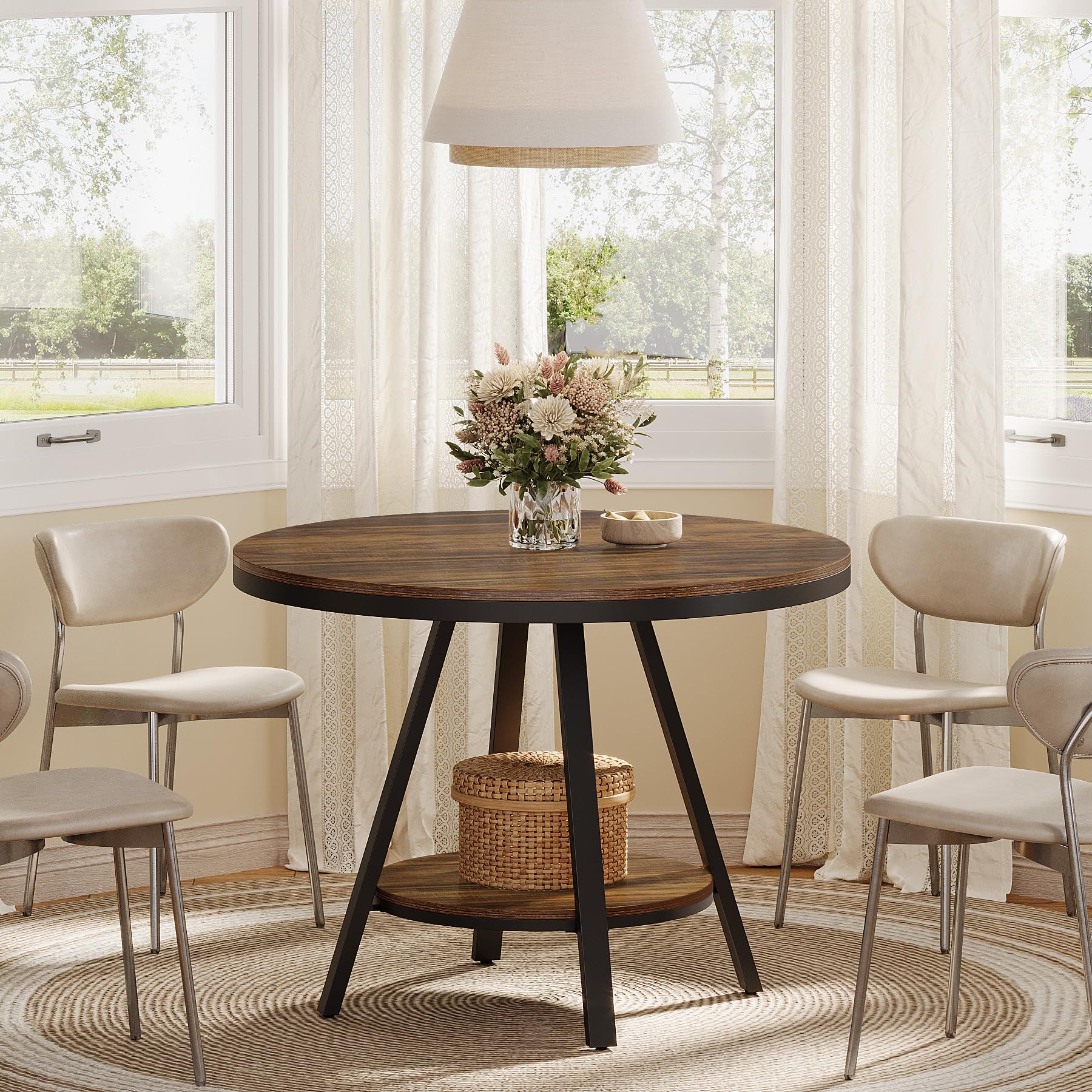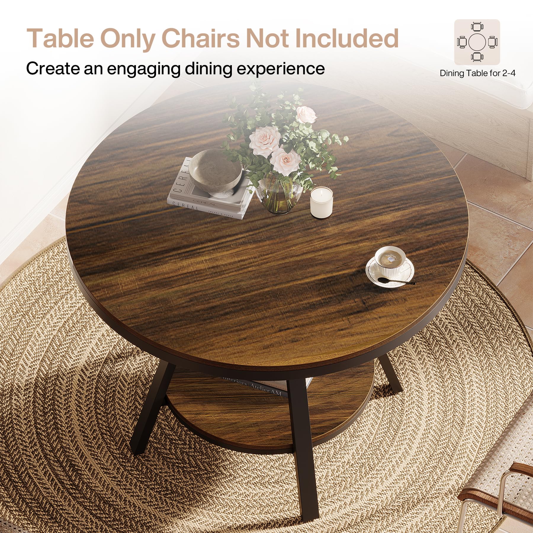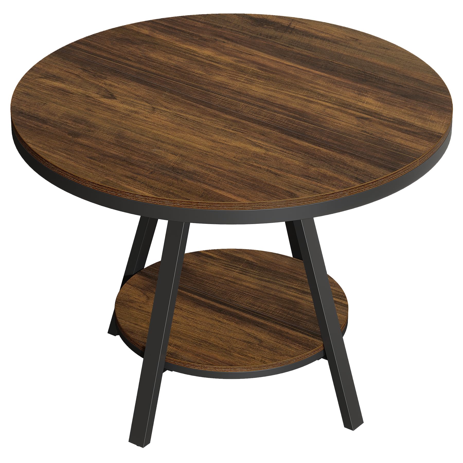 Tribesigns 2段 インダストリアルラウンドダイニングテーブル 小型キッチンディナーテーブル 2~4人用 35インチ サークルウッド キッチン&ダイニングルーム家具 頑丈な金属製の脚付き 素朴なブラウン