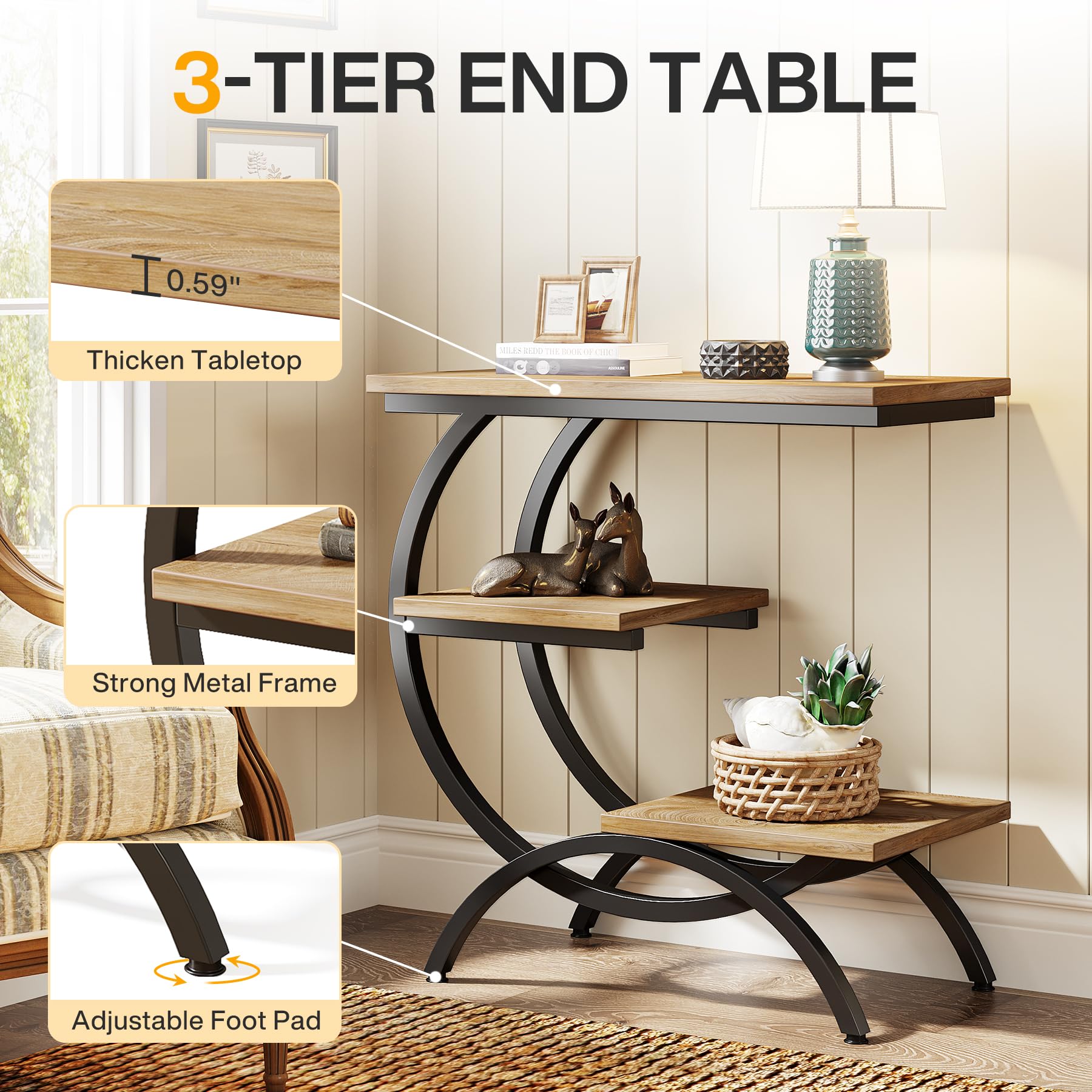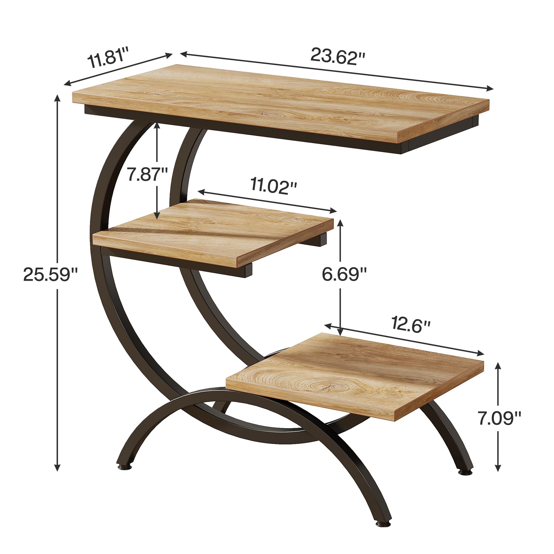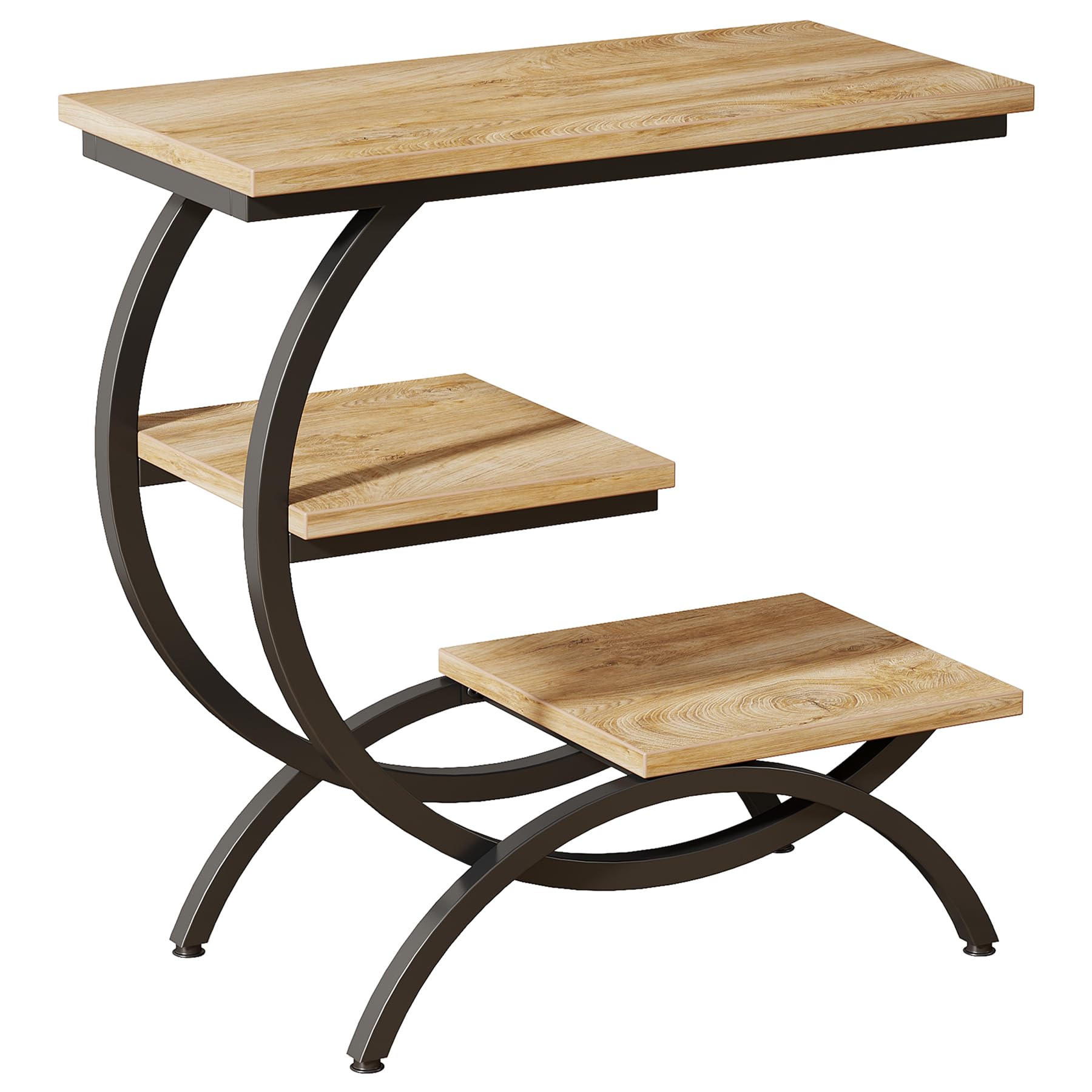 Tribesigns C型エンドテーブル 工業用 3段 小型サイドテーブル カウチ用 木製 ベッドサイドテーブル スナックサイドテーブル 収納棚付き リビングルーム 小スペース用 ライトブラウン