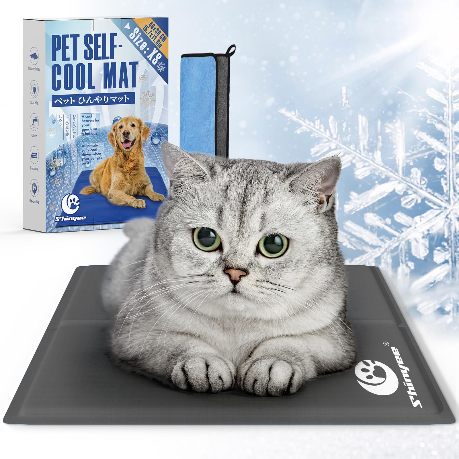 Shinyee® ペット ひんやりマット 犬 ベッド 夏 (XS-XXL)【ペット看護師監修】 クールマット 犬 猫 ペット 冷却マット 多用途 冷感ジェルマット 犬 ひんやりシート 暑さ対策 犬 熱中症対策 - グレー、XS:40x30CM