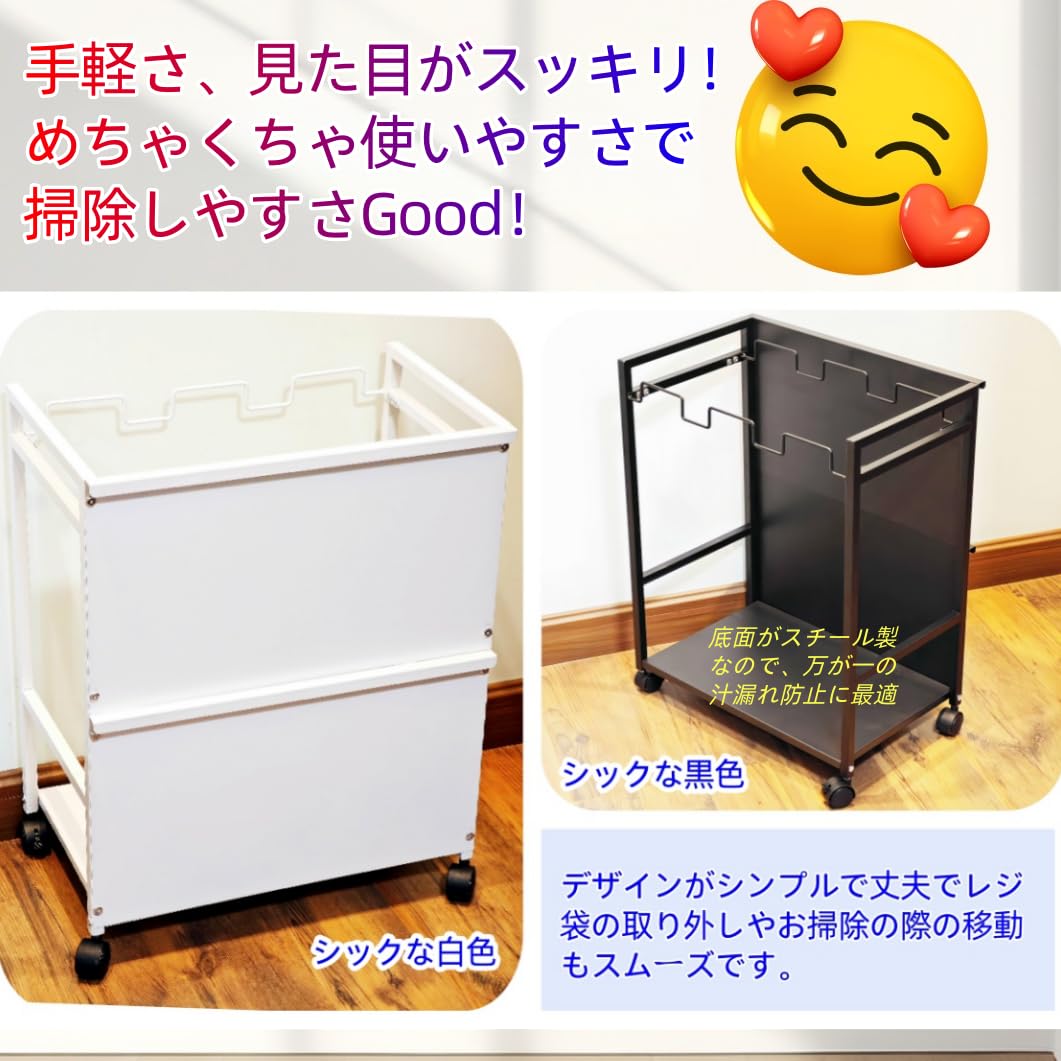 Secchuu 目隠し分別ダストワゴン 2分別 スチール製 ゴミ袋ホルダー W36XD35XH57cm ゴミ袋スタンド タワーゴミ箱 キャスター付き スタイリッシュ ダストボックス 手軽さ おしゃれ 組立商品 掃除しやすさ フタなしゴミ箱 (2分別ホワイト)
