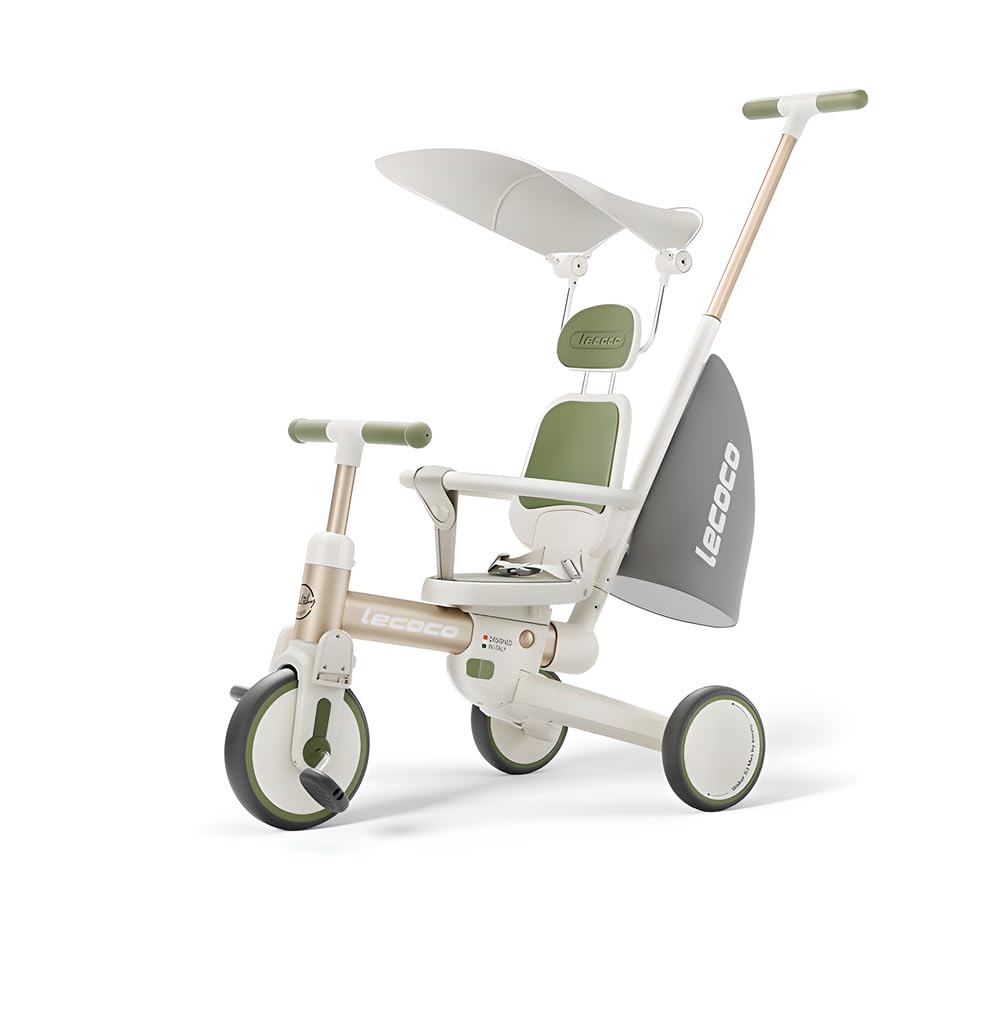 Gorocking 三輪車 折りたたみ 3色 カジキリ押し棒付き 組み立て簡単 対象年齢1.5~5歳 (ガード+サンシェード, グリーン)