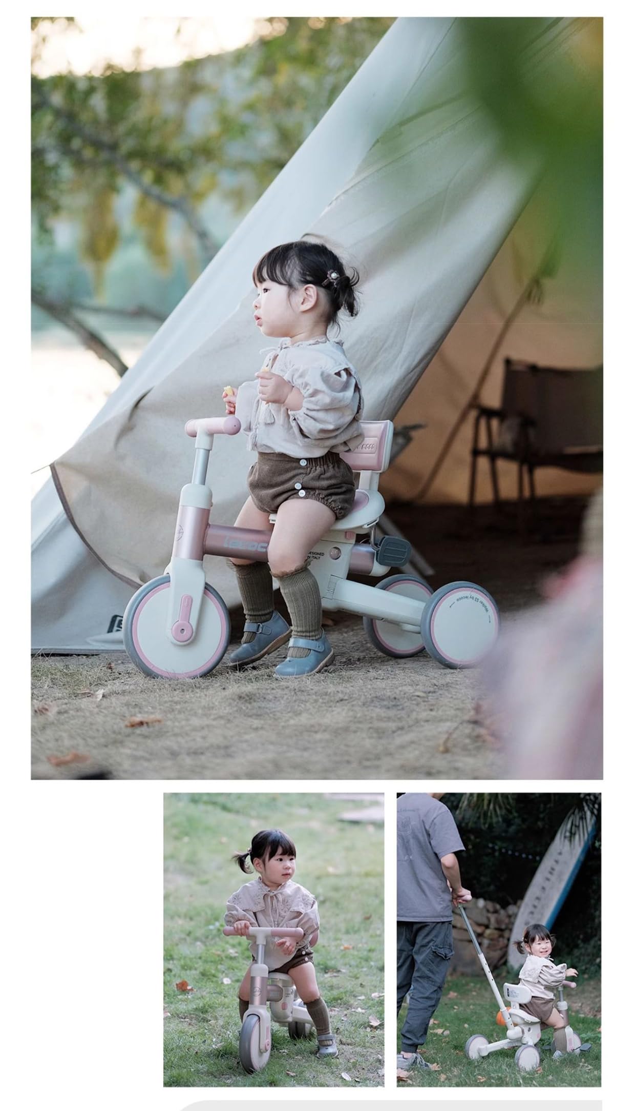 Gorocking 三輪車 折りたたみ 一台四役 4in1 押し棒付き 組み立て不要 対象年齢1.5~5歳 (ブラウンクマ)
