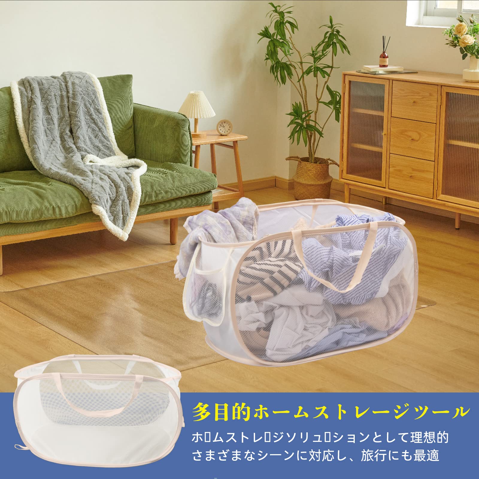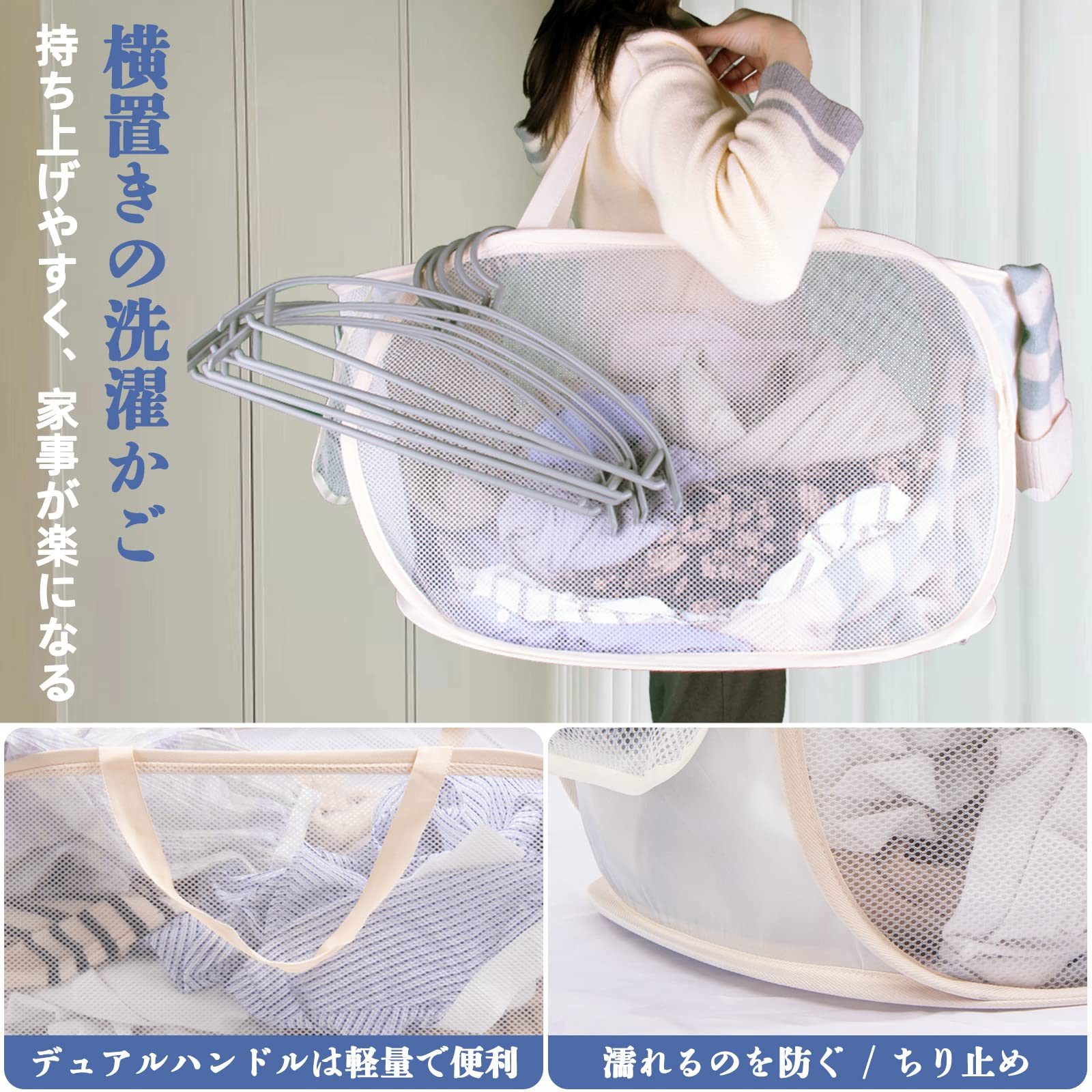 HEDONLEE 洗濯カゴ 洗濯かご 折りたたみ 横型 ランドリーバスケット 2個入 70L 大容量 メッシュ ランドリーバッグ ランドリーボックス 洗濯籠 洗濯物入れ 収納 超軽量 旅行 持ち運び可能 (ベージュ)