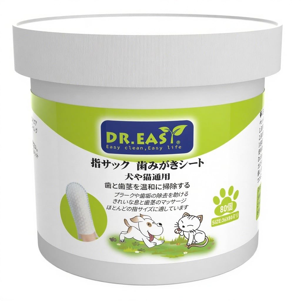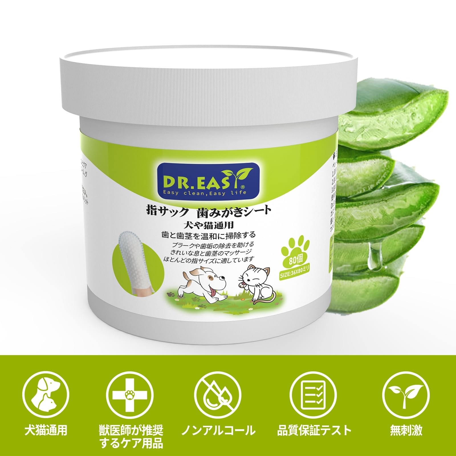 DR.EASY指サック歯みがきシート 80枚入り 犬猫通用 人工香料不使用 植物由来成分