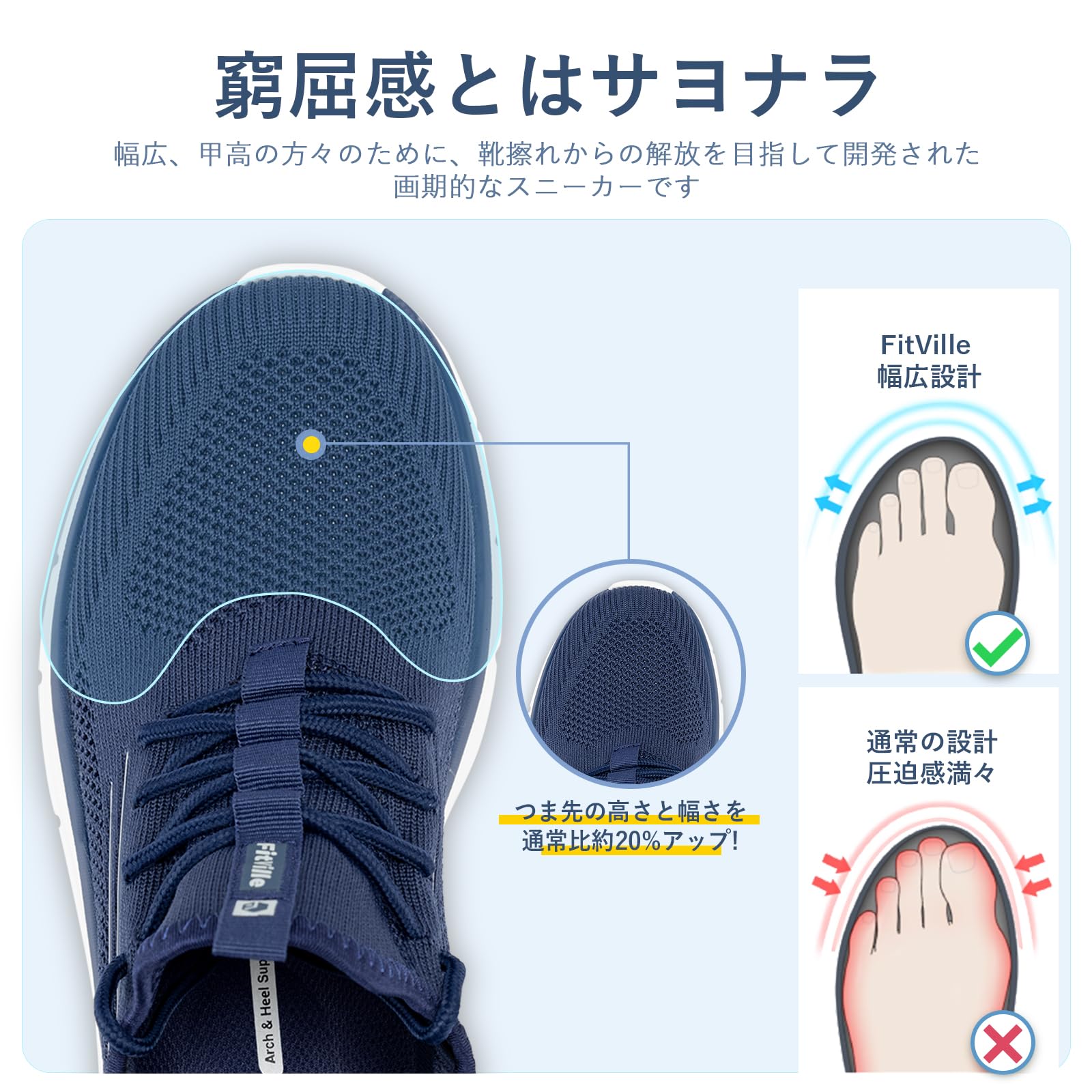 [FitVille] 幅広 スニーカー メンズ 2E 4E ウォーキング ランニングシューズ 運動靴 厚底5cm スリッポン 手を使わずに立ったまま履ける 脱ぎ履きしやすい