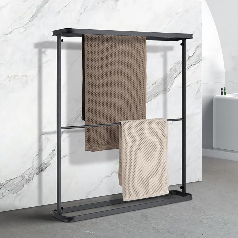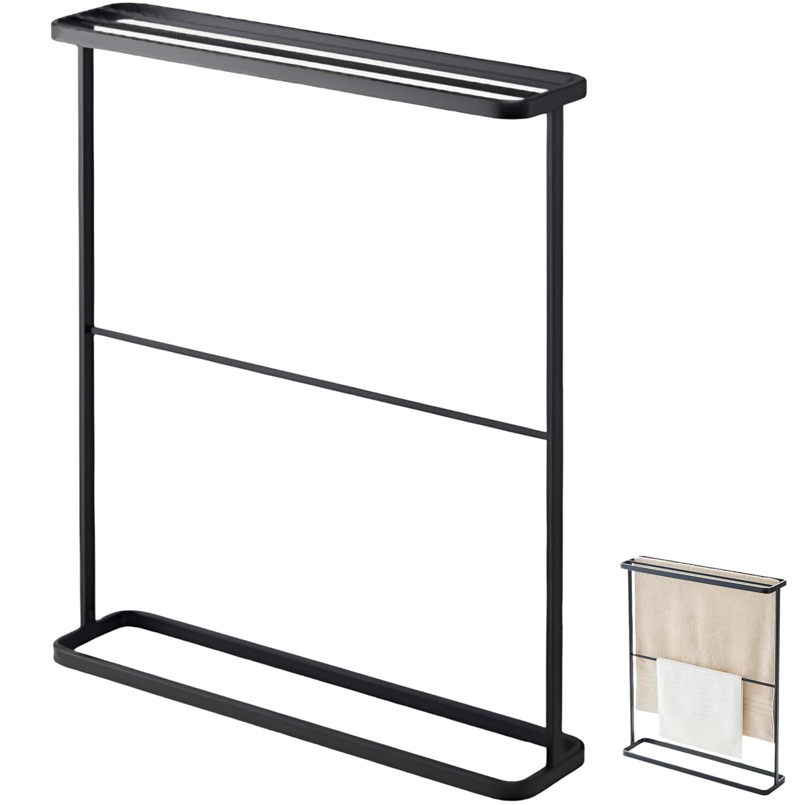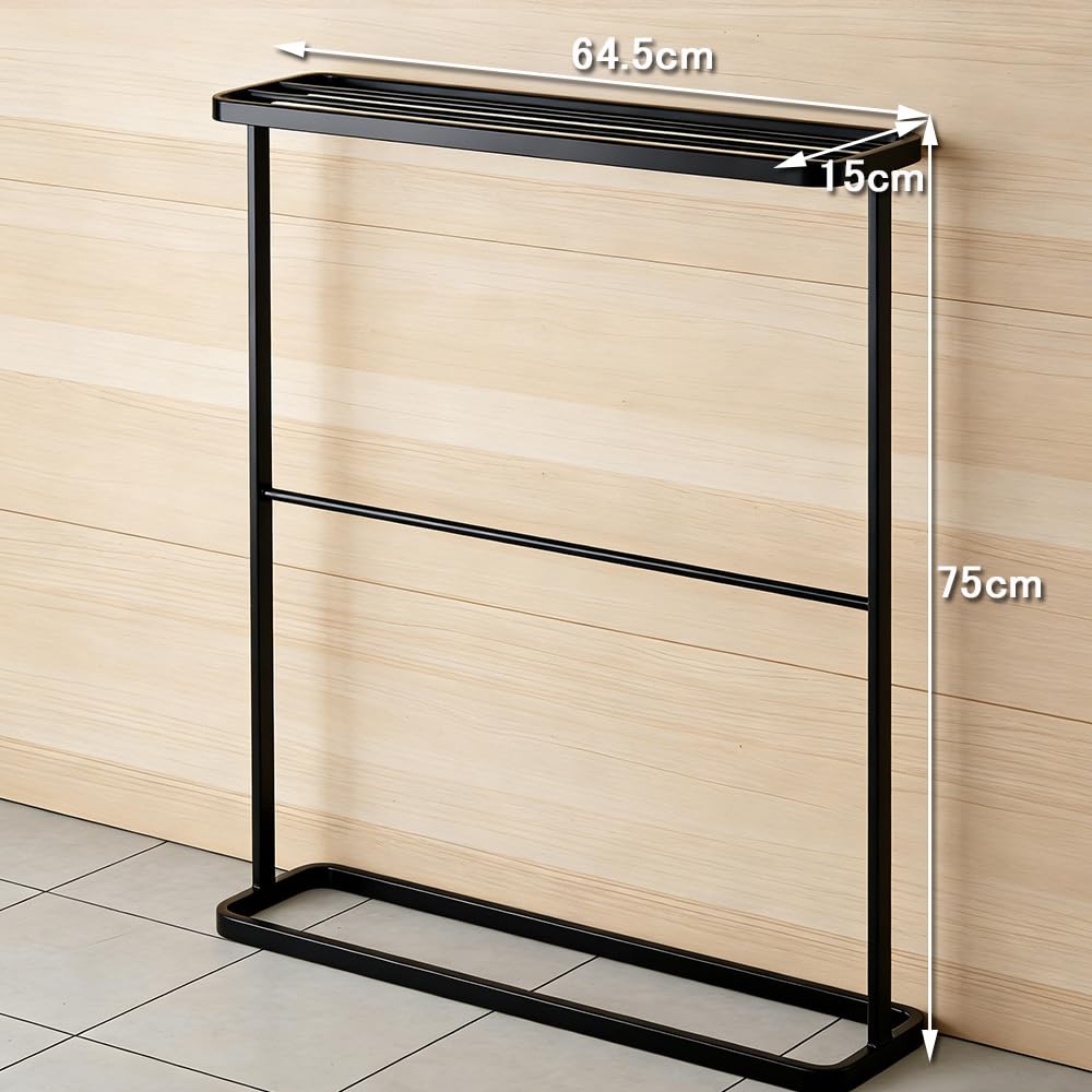 KALOLINNA バスタオルハンガー バスタオル掛け タオルハンガー 金属材質 大判サイズも干せる ランドリー収納 部屋物干し 室内干し 物干し 大判 隙間収納 洗面所収納 省スペース コンパクト 置き型 浴室/洗面所/トイレ/室内用 (ブラック)