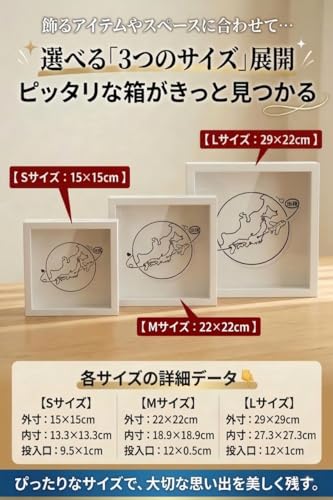 チケットボックス シャドウボックス 思い出 フレーム 日本地図 飛行機 出発 デザイン スロット付き 立体額 卓上 壁掛け 木製 チケット 収納 写真 記念品 (粘着ドット付き 日本語説明書付き) (ホワイト, M 22CM*22CM)
