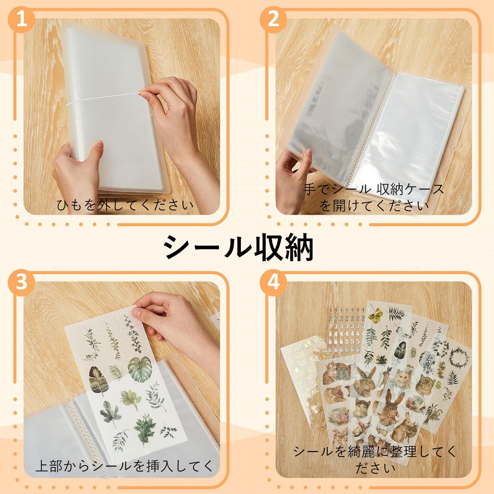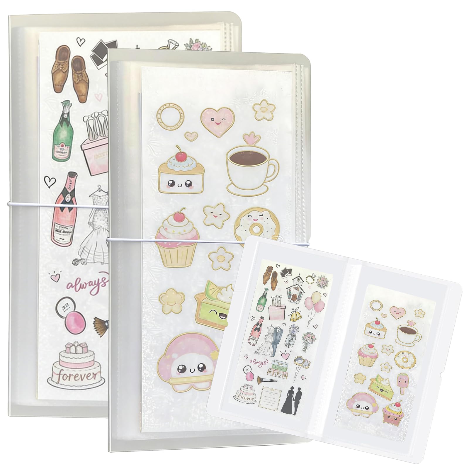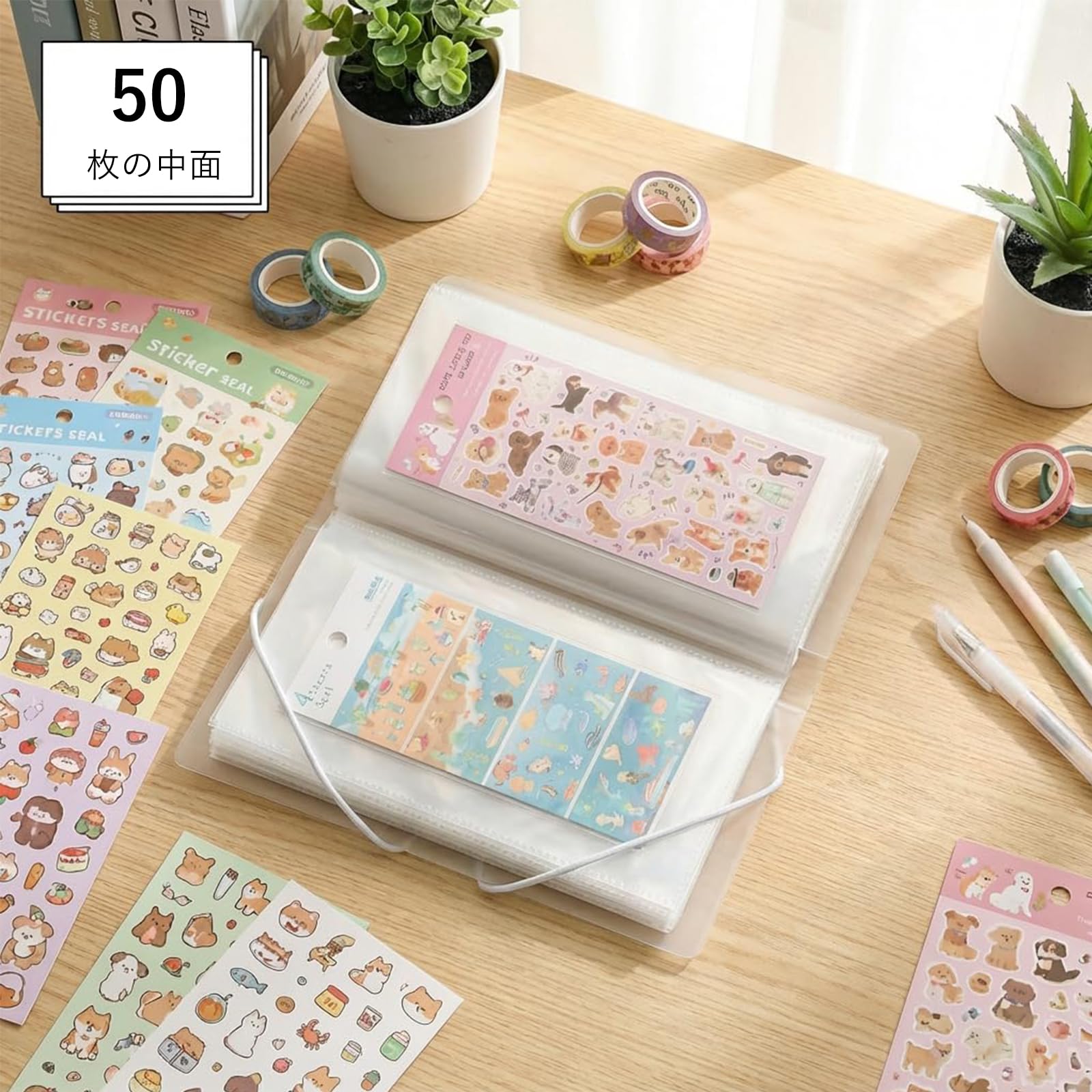 シール収納ブック 2 冊セット 大型クリア収納ブック ステッカー・スケジュール記録・アルバム・チケット・シール ファイル整理に対応 50 ページ リングバインダー サイズ 12.9×25cm