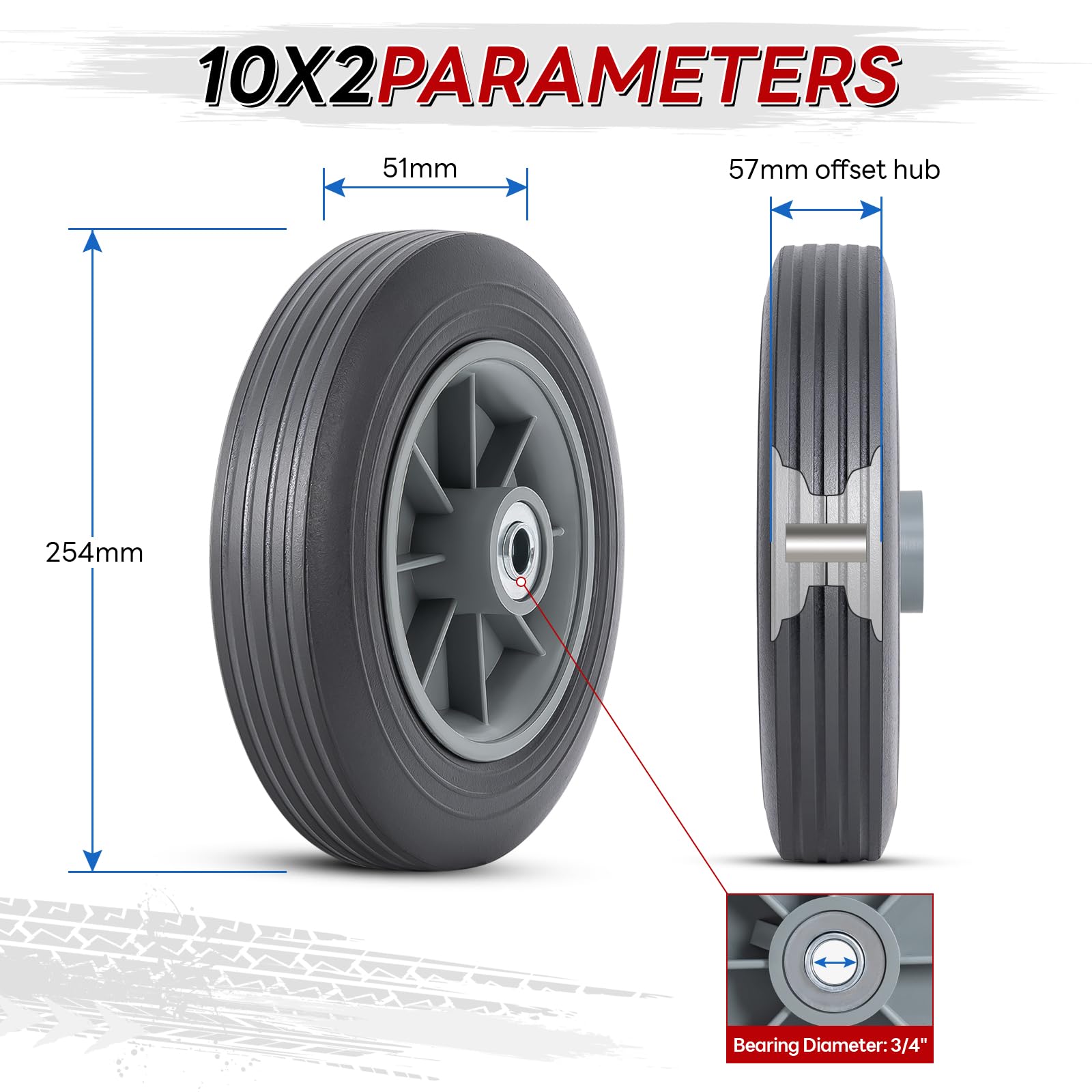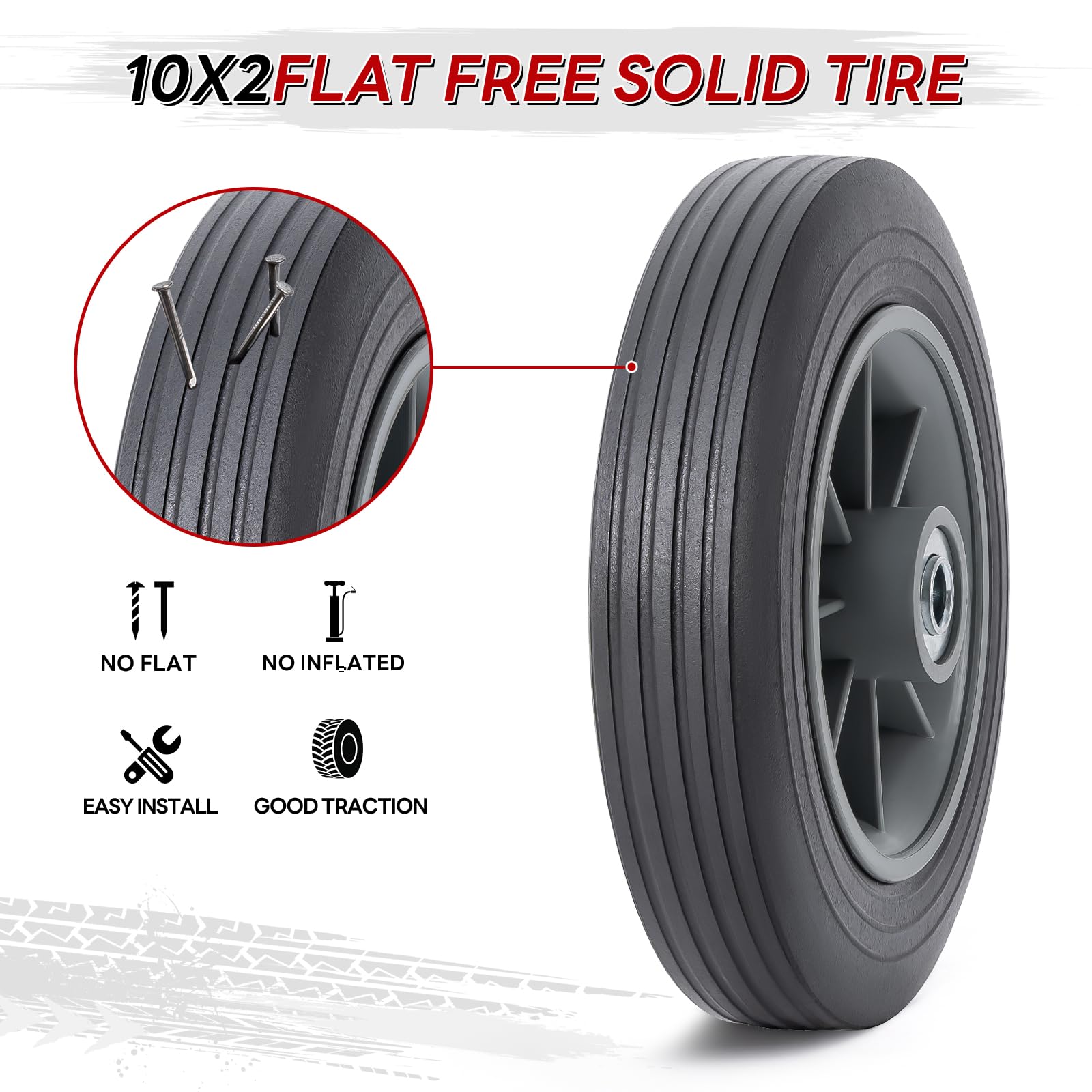 PaoWin 2本,10x2 タイヤ ソリッド,10x2 タイヤ&ホイール,適用 10x2.0 ハンドトラック/手押し車/ハンドカート/キャリーカート,P-065