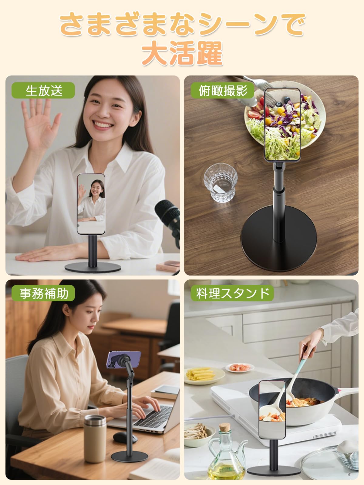 Cooper 360°スマホスタンド - 高さ調整 卓上 スマホスタンド- 携帯スタンド 卓上 撮影 スマホ台 スマホ立て スマホ置き iphoneスタンド スマホホルダー 携帯ホルダー 三脚 (ブラック) Women, iPhone Holder コンパクト