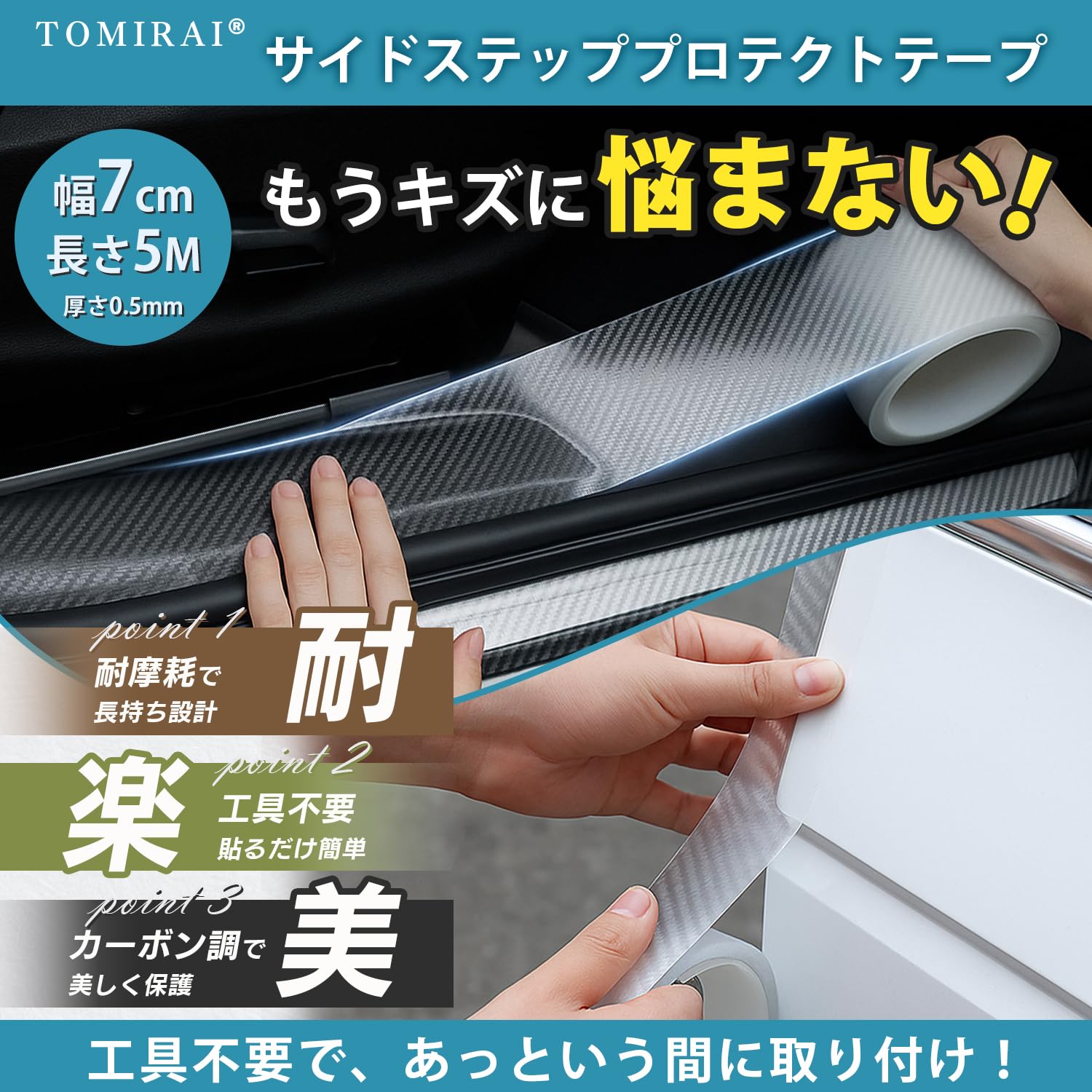 TOMIRAI プロテクションフィルム 車 保護テープ 【整備士監修・愛車を守る】 車用プロテクターフィルム カーボンテープ 傷・汚れ・衝撃防止 簡単装着 高粘着 汎用 ドアハンドルプロテクター4枚付 (カーボンクリア, 幅7CM×長さ5M)