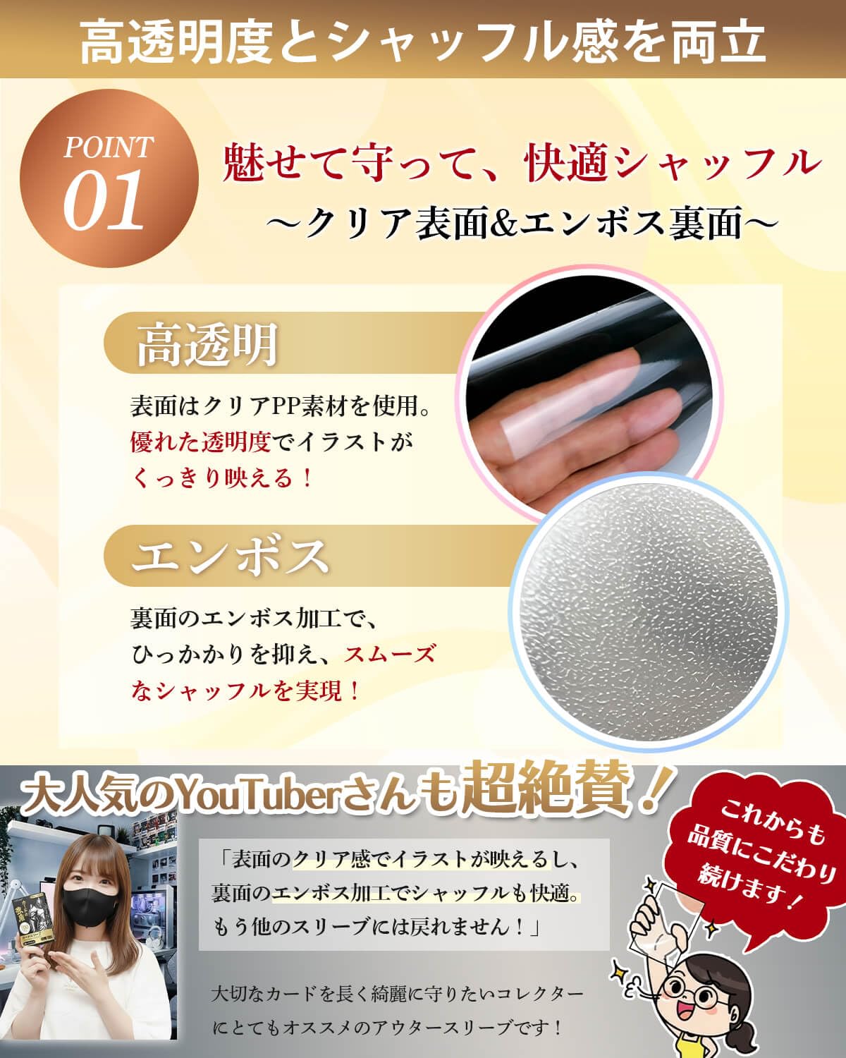 TOMIRAI オーバースリーブ 【カードの強盾・劣化を防ぐ・100枚】 エンボス&クリア カードスリーブ ポケカ MTG デュエマ ワンピ ガンダム カードゲーム対応 レギュラーカード用 スタンダードカード用 外スリ オバスリ 69×94mm