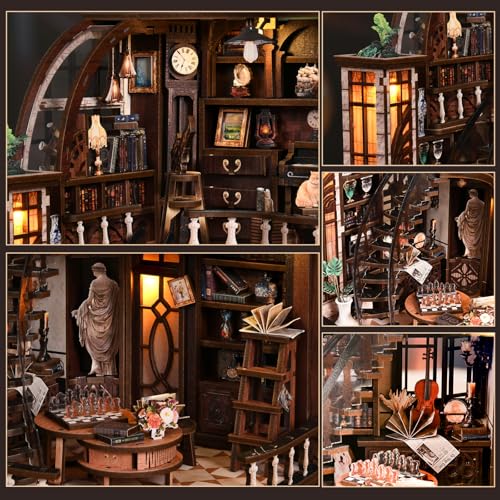 CRESYMME ミニチュア ドールハウス ブックヌック キット LEDライトとオルゴール付き DIY 手作り 立体 木製 小屋 パズル 大人向け(魔法研究会 )