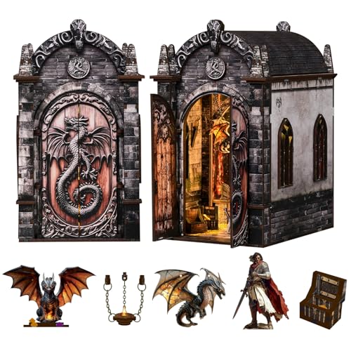 CRESYMME ミニチュアハウス ドールハウス ブックヌック キット 木製 DIY 立体 趣味 手作り(竜の宝庫)