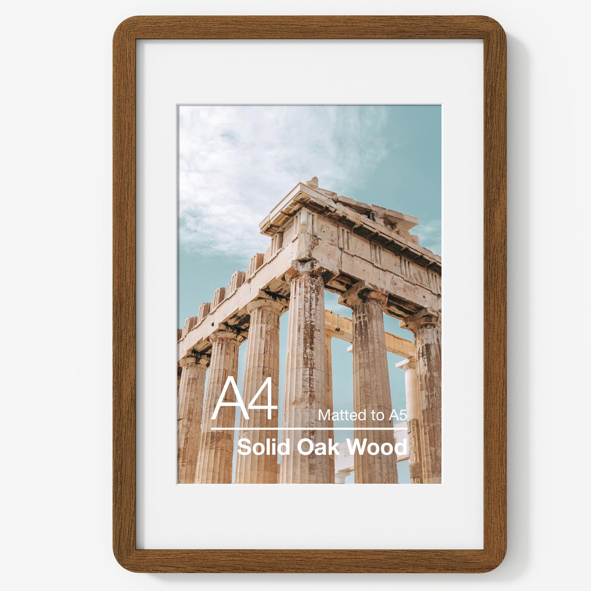 Marsmiles A2 木製写真フレーム 米国調 ナチュラルオーク 無垢材 フォトフレーム プレキシガラス付き 写真展示用 A3 マット付きまたは A2 マットなし ウォールナット 1パック