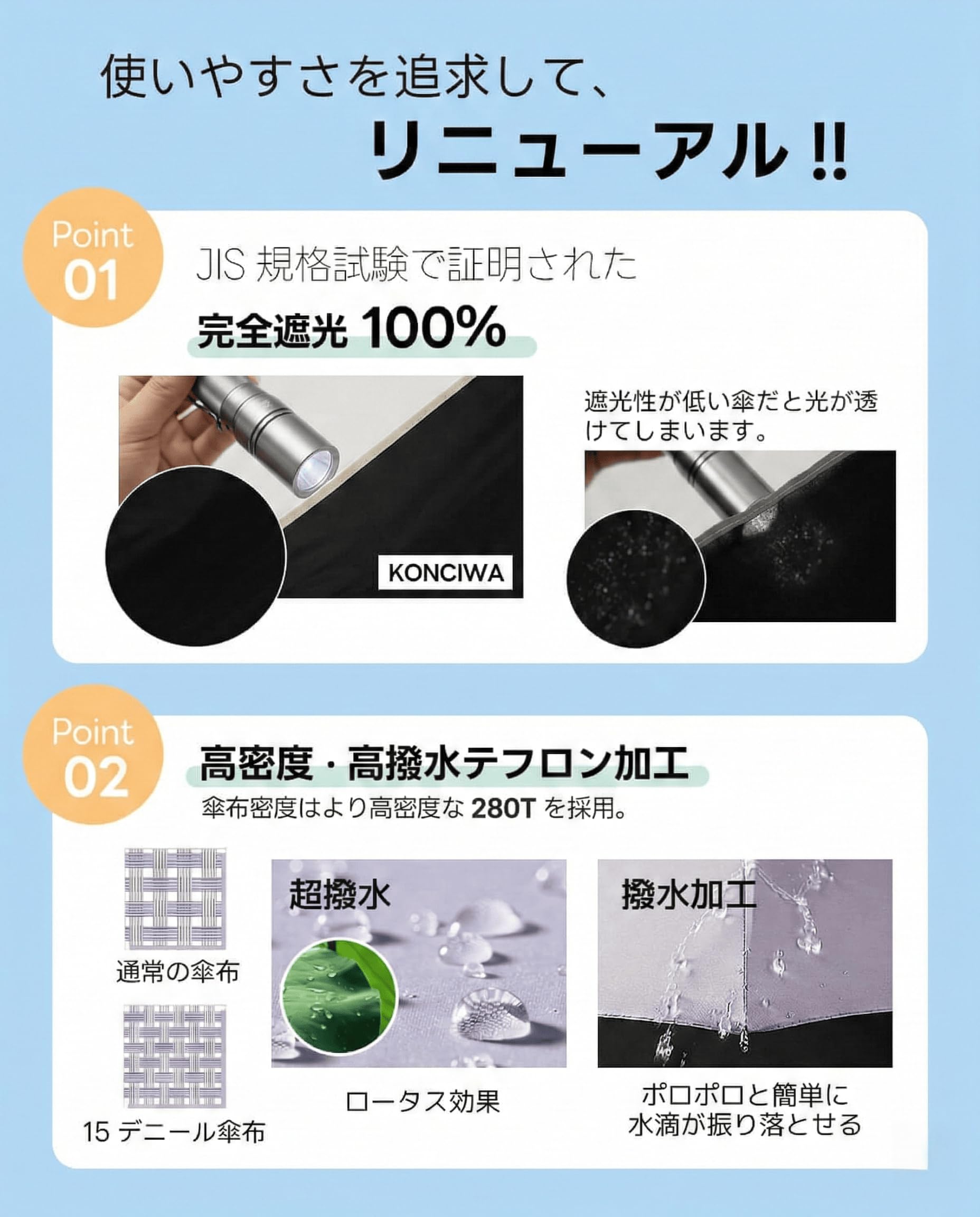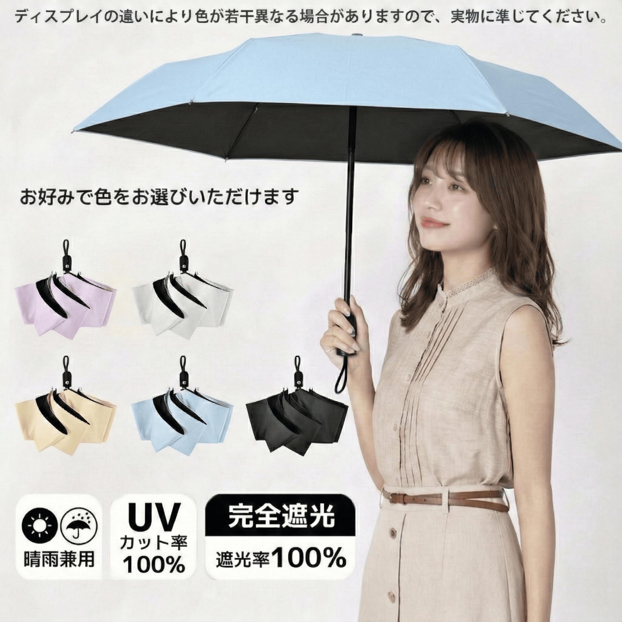 【145g超軽量 & 直径90cm】日傘 折りたたみ傘 100%完全遮光 紫外線遮断 UPF50+ 晴雨兼用傘 折り畳み 遮熱効果 涼しい 21cmコンパクト スリム 丈夫な6本骨 撥水 耐風 梅雨対策 通勤 通学 ギフト