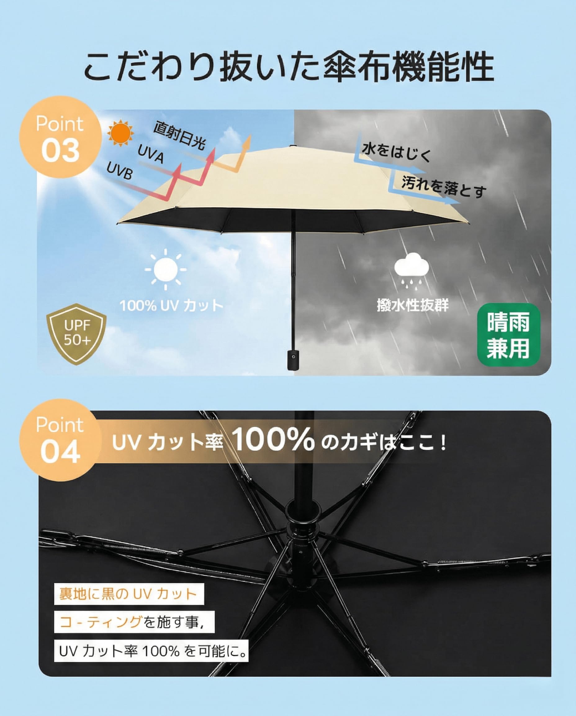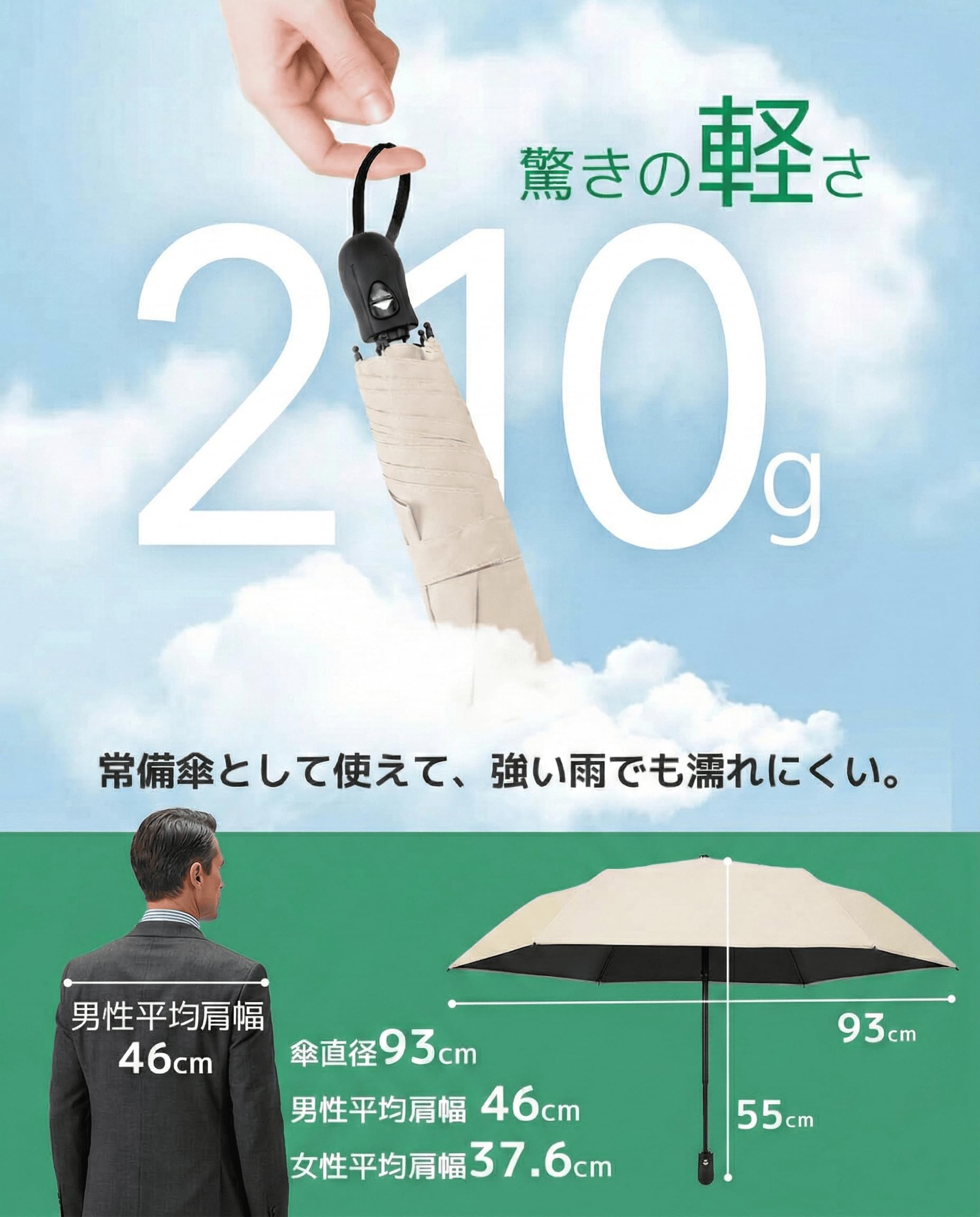 日傘 軽量 210g UVカット率 100% 完全遮光 遮熱 反射冷却素材採用 ワンタッチ自動開閉 折りたたみ傘 コンパクト 折り畳み日傘 紫外線遮断 耐風撥水 晴雨兼用 携帯便利 メンズ レディース 母の日 父の日