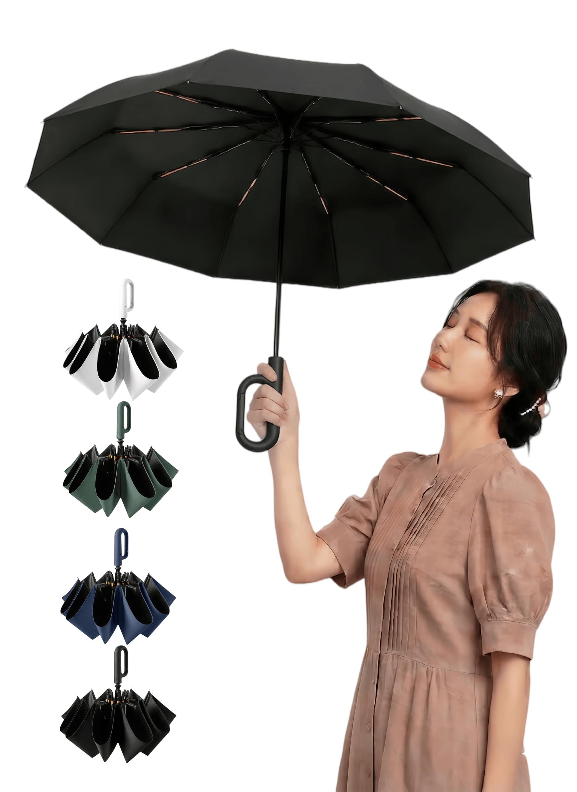 折りたたみ傘 逆折り式 ワンタッチ 自動開閉 大きい 105cm 10本骨 晴雨兼用 UVカット UPF50+ 遮光 遮熱 撥水 耐風 丈夫 カラビナ付き 持ち運び便利 メンズ レディース 傘 梅雨対策 台風対策