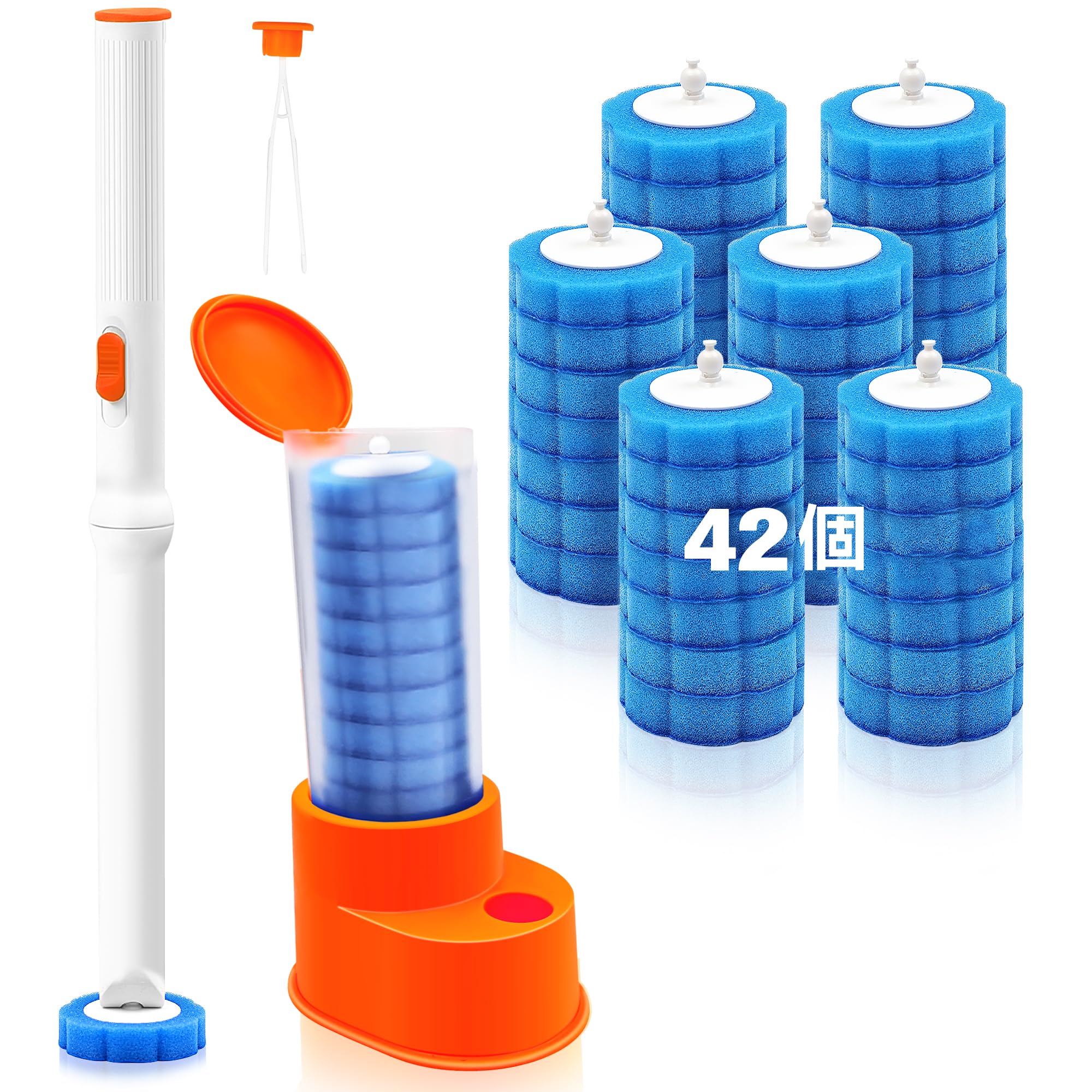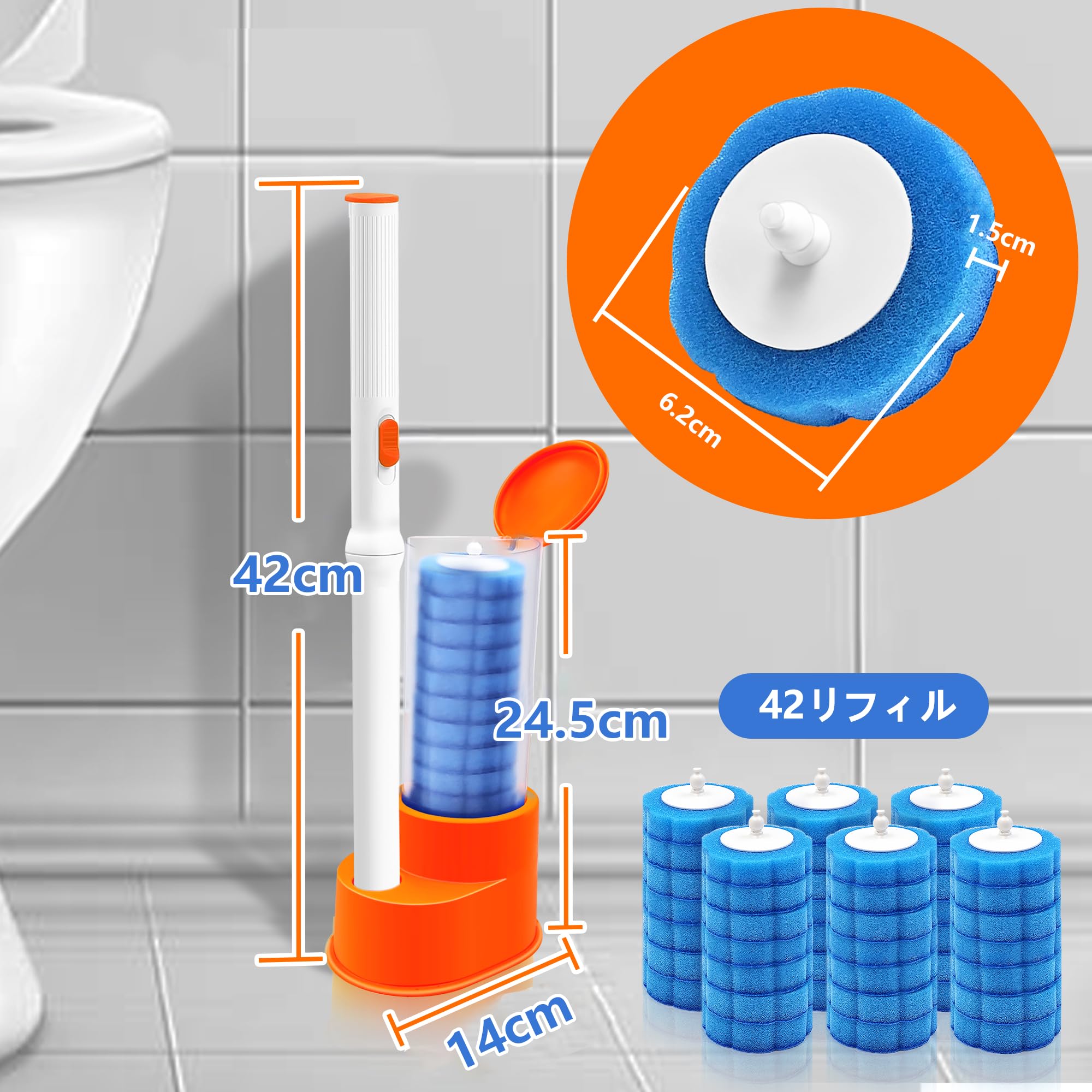 JEHONNトイレブラシ使い捨てと付け替え用 (付替品42個), ブラシと隠しピンセット,使い捨てトイレブラシシンクバスタブ洗面器モッププール用