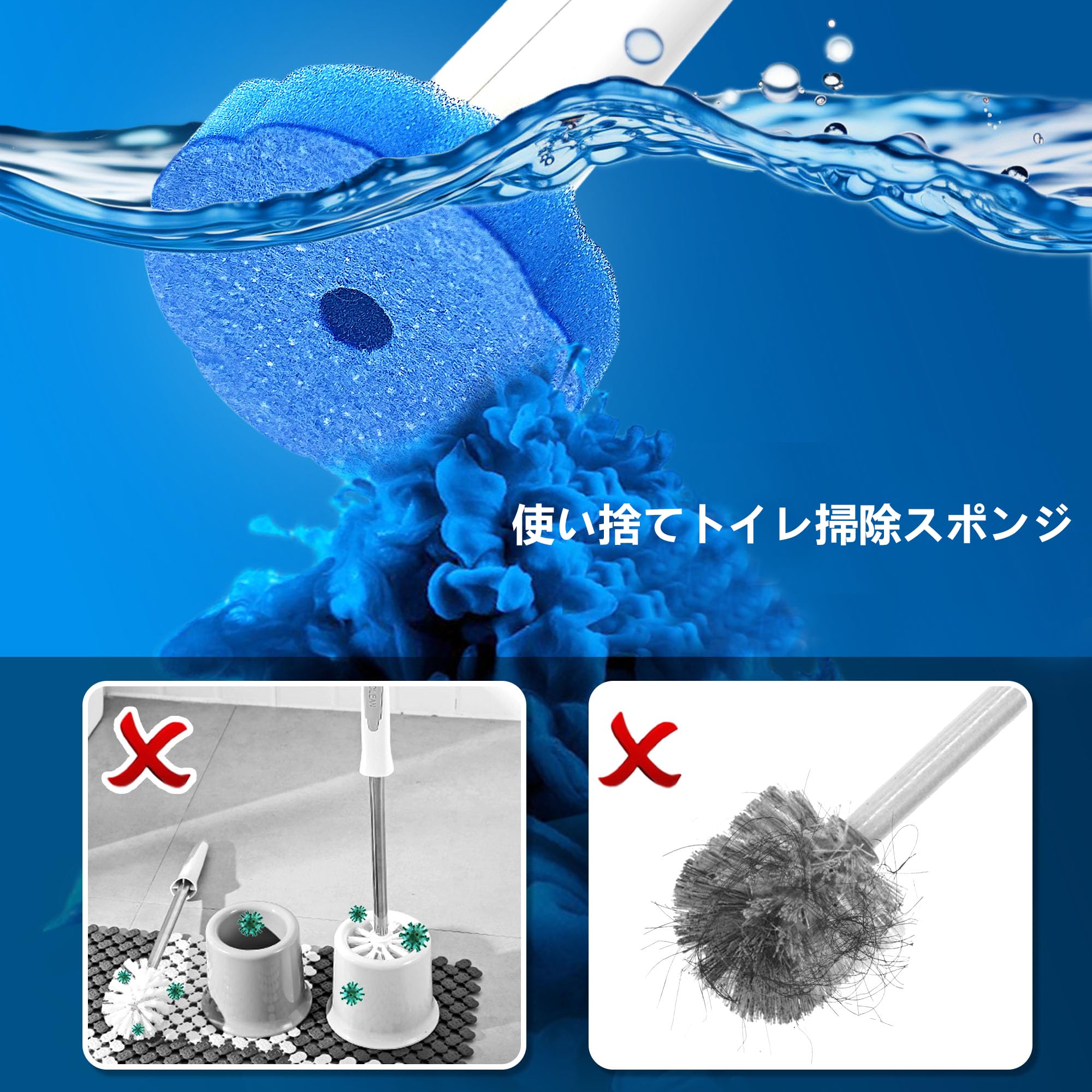JEHONNトイレブラシ使い捨てと付け替え用 (付替品48個),壁掛け使い捨てトイレブラシシンクバスタブ洗面器モッププール用(青)