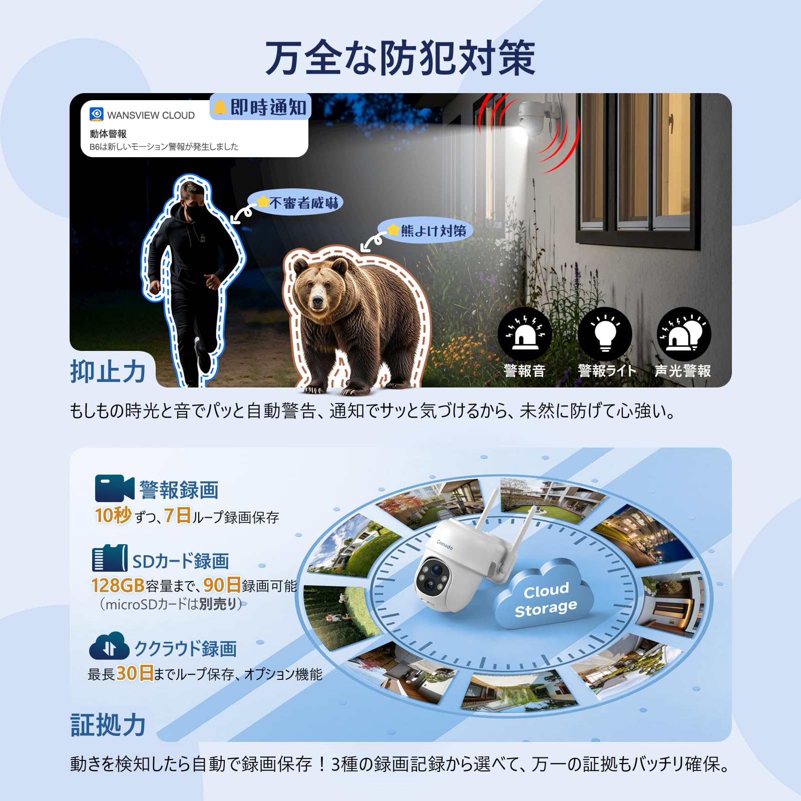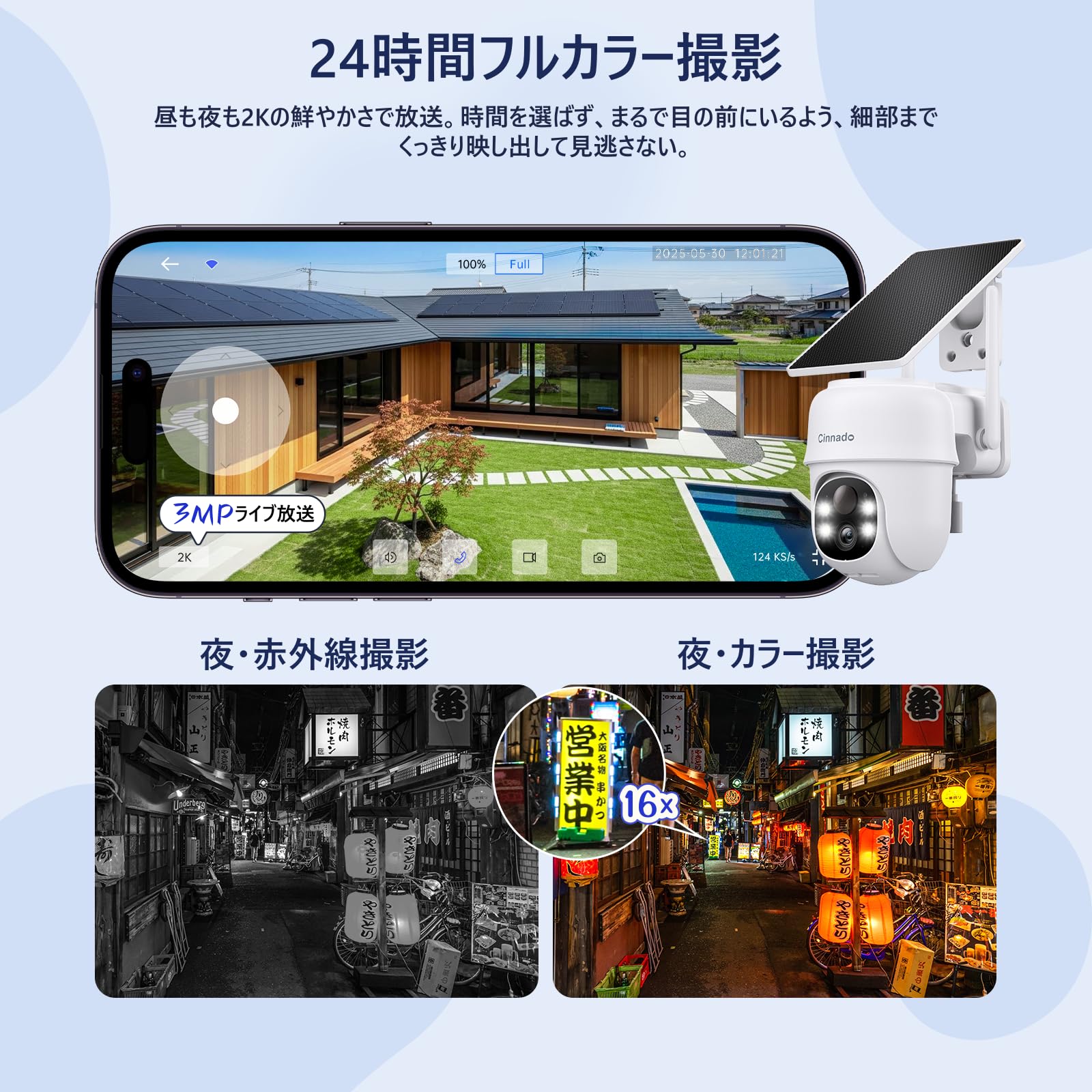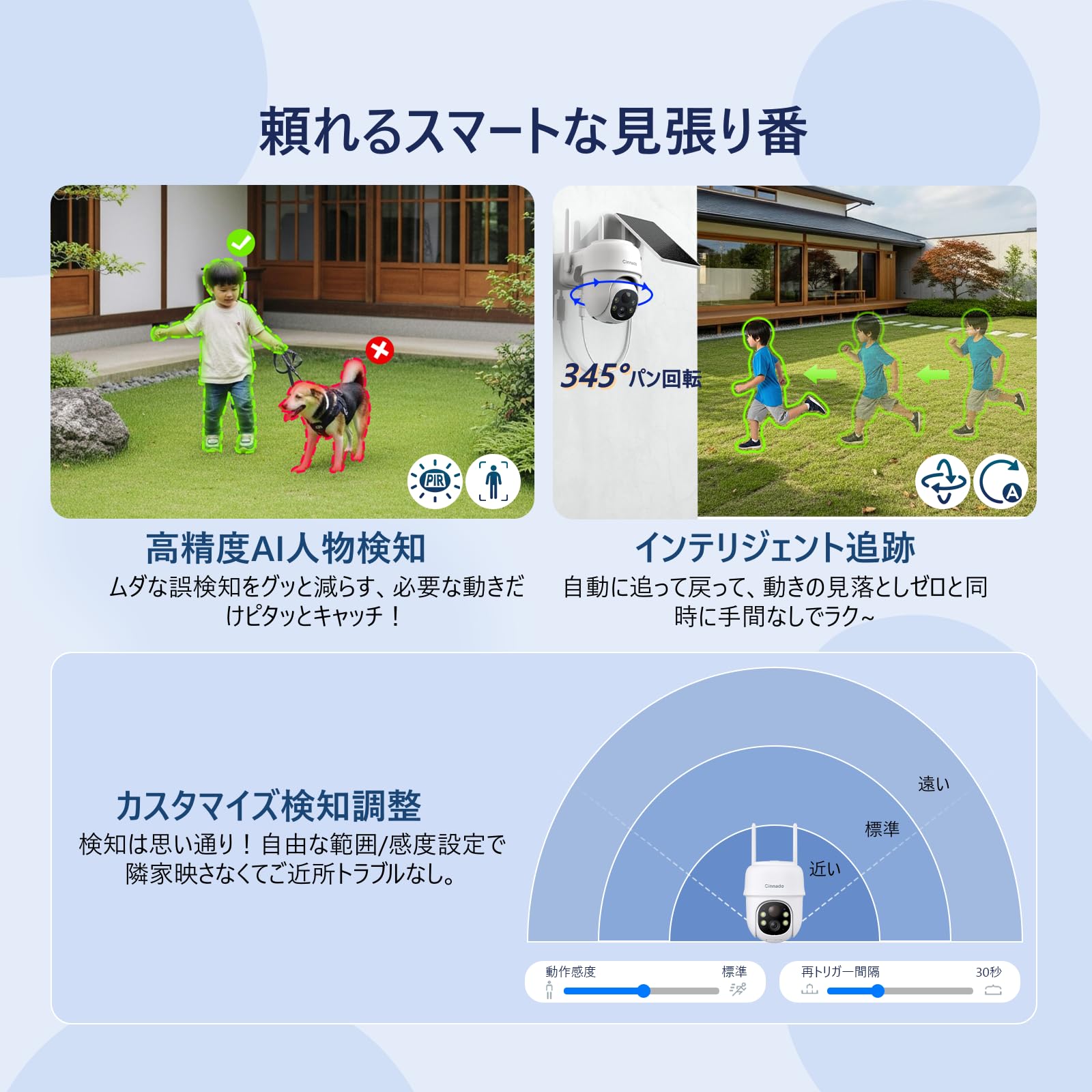 【2026新登場・AIが太陽で動く】Cinnado防犯カメラ屋外ソーラー300万画素 高性能PTZカメラ360°自動追跡&フルカラー夜視 監視AI+PIR複合検知誤報減少感知異常時声光警報&スマホ通知で即対応 高効率ソーラー充電長時間駆動&簡単取付/2.4GHzWiFi遠隔操作 双方向通話·家族共有·クラウド/SDカード録画保存 IP65防水防塵で365日屋外守備 Alexa対応