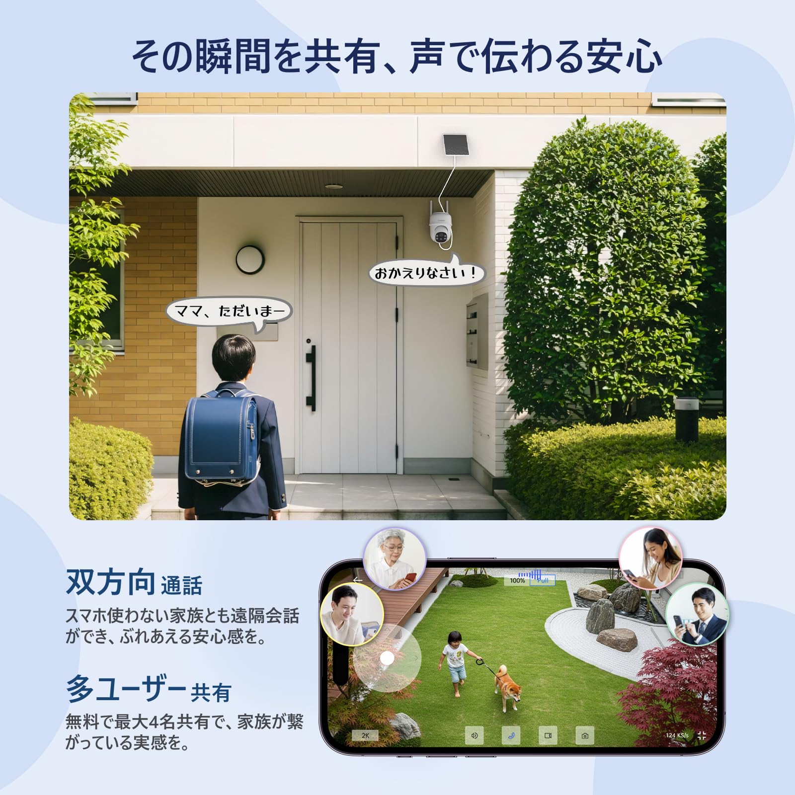 JUFLSKY 防犯カメラ 屋外 ソーラー 400万画素 かんしカメラ 屋外 5200mAh 2.4G/5GHz バッテリー ソーラーパネル付き 夜間カラー撮影 双方向通話 人体検知 動体検知 暗視 夜間カラー メモリカード/クラウド Alexa対応 室内 室外 IP65防水 無線 ワイヤレス 24h常時録画 スマホ通知 警報通知 玄関/庭/車庫 防犯対策 日本語説明書