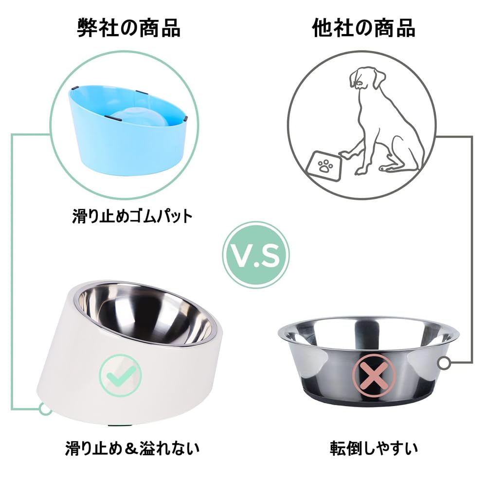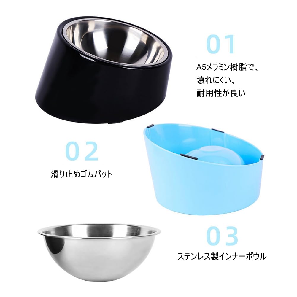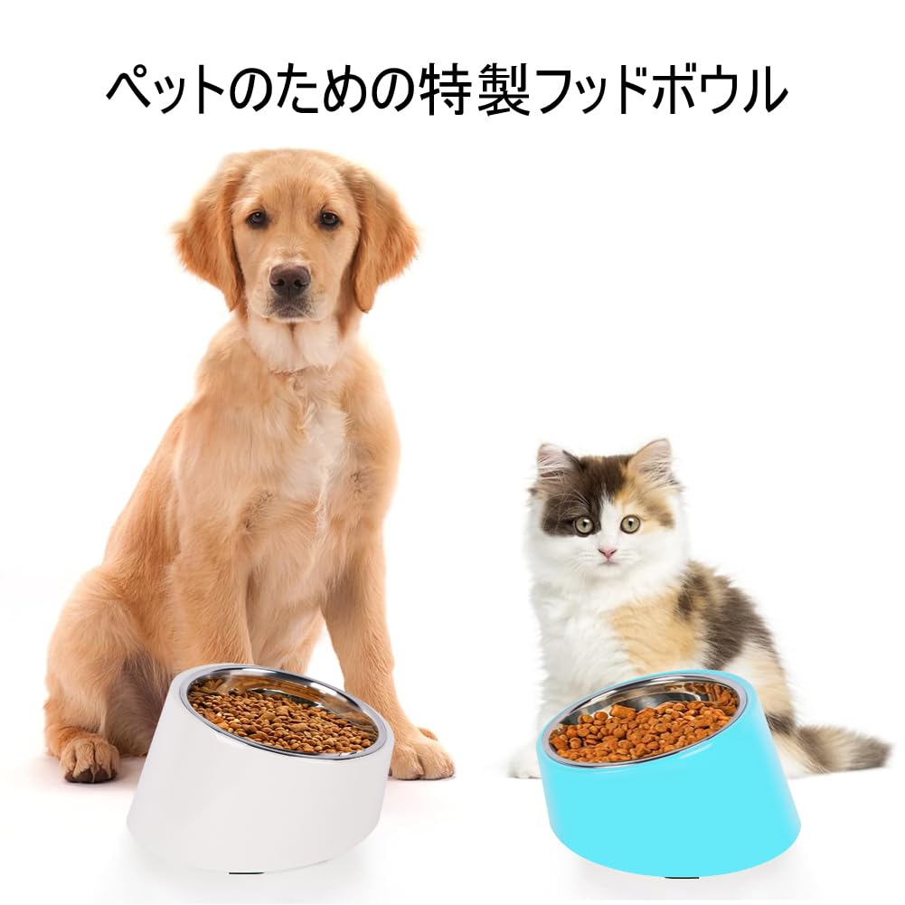 獣医さん推奨 猫食器【頸椎を保護する/食漏れ防止】ネコボウル フードボウル ペット餌入れ ステンレス給食器 15度の傾斜猫用エサ皿 おやつ皿 水飲み皿 吐き戻し防止 食べやすい すべり止め 取り外し式 犬猫兼用食器 小型犬 食器スタンド ご飯台 食器台 可愛い 食事をもっと快適に