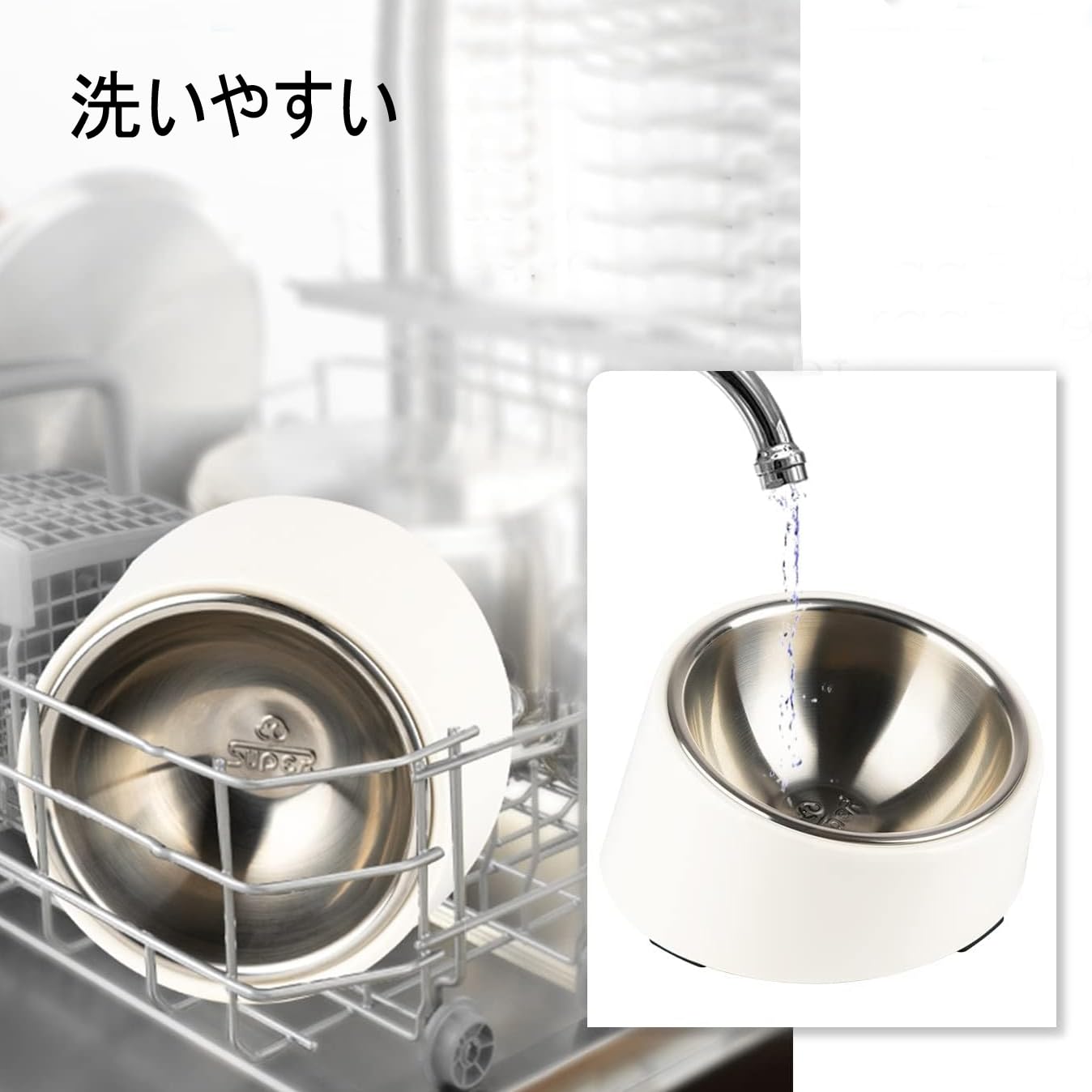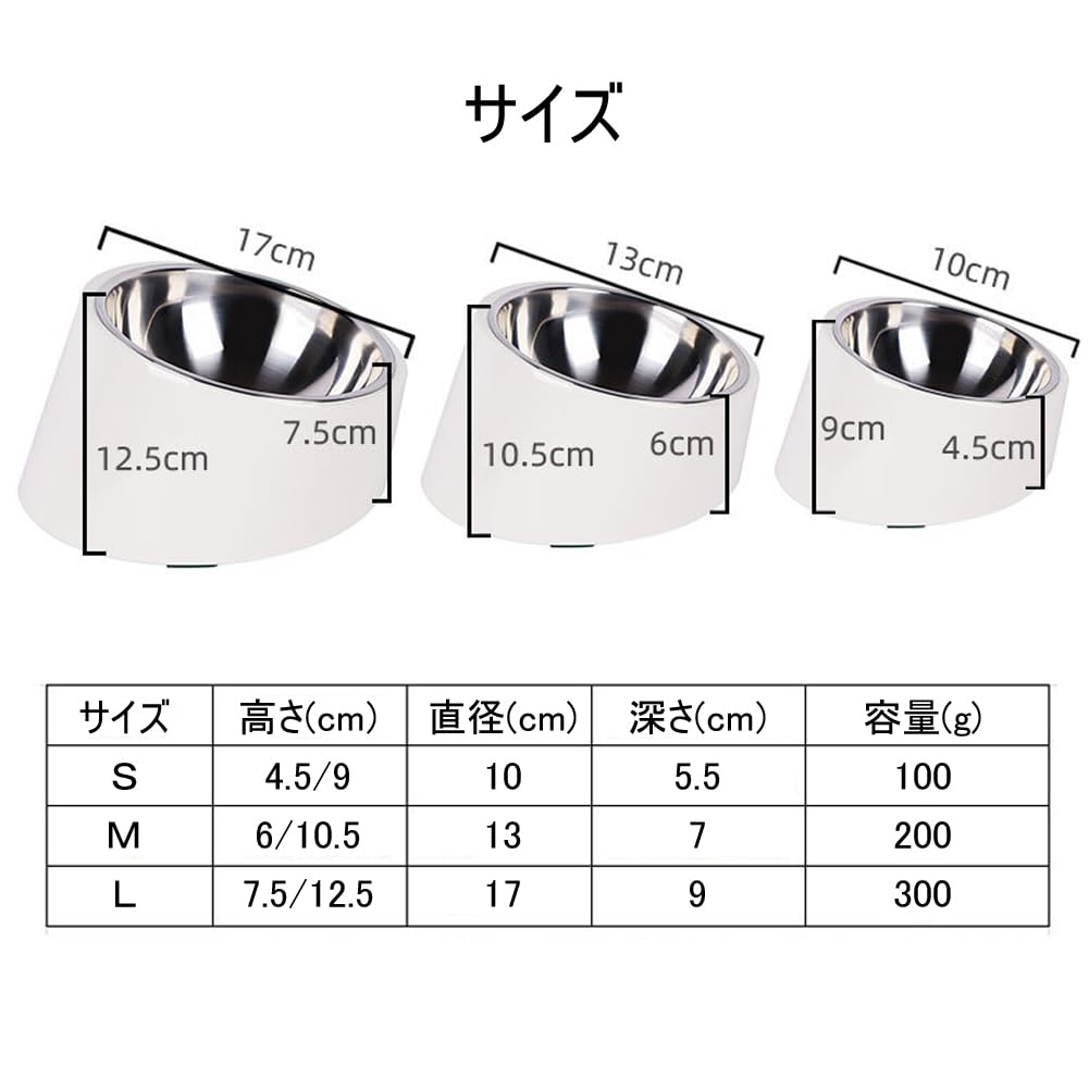 DR.TREE 犬 食器 ステンレス ペット用フッドボウル 猫食器 15度 傾斜がある メラミン製スタンド 洗いやすい 取り外し可能 滑り止め 食べやすい Mサイズ 白