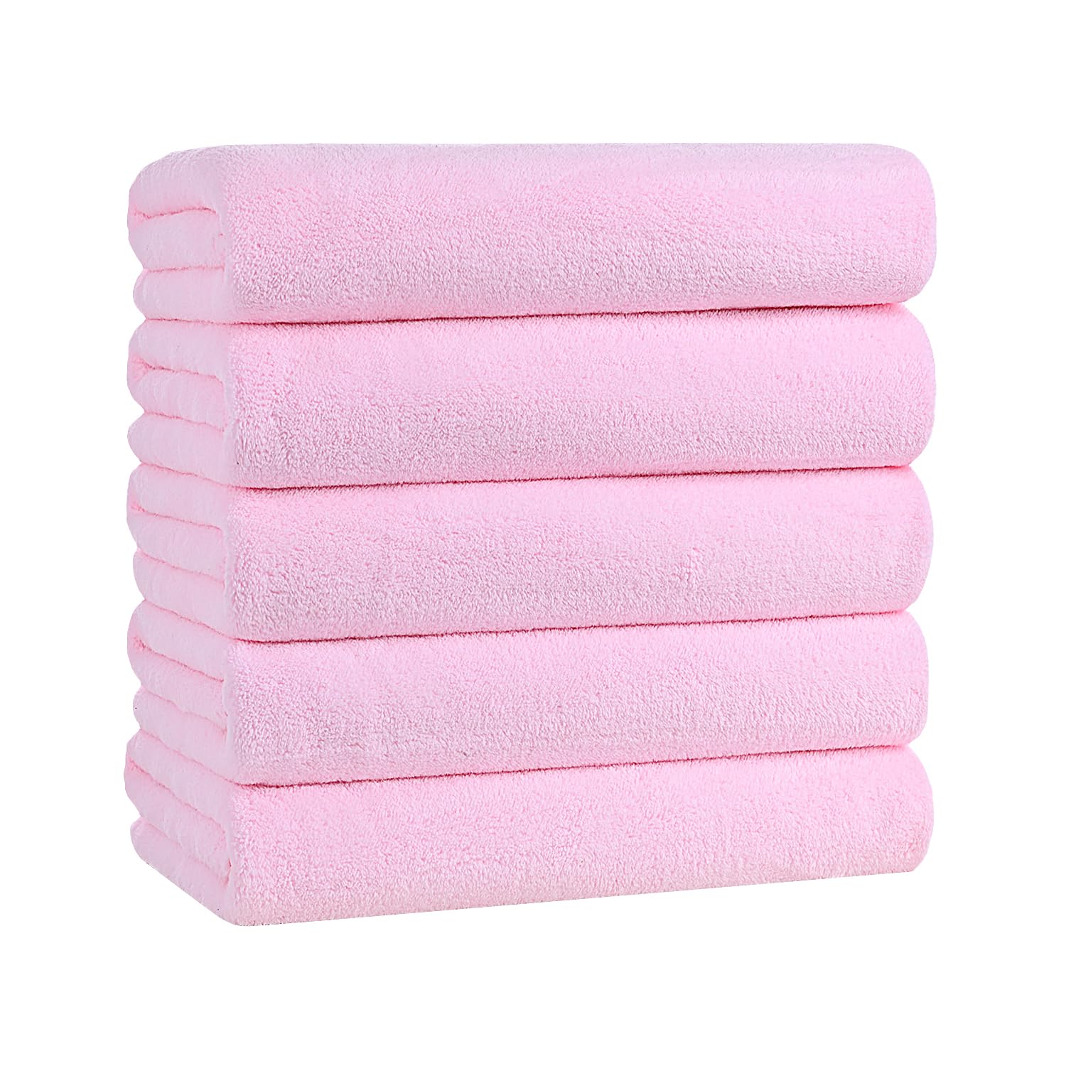 バスタオル マイクロファイバー 大判 60*120cm 5枚セット ふわふわ 柔らかい肌触り 高速吸水 速乾 耐久性 抗菌防臭 (ベビーピンク)