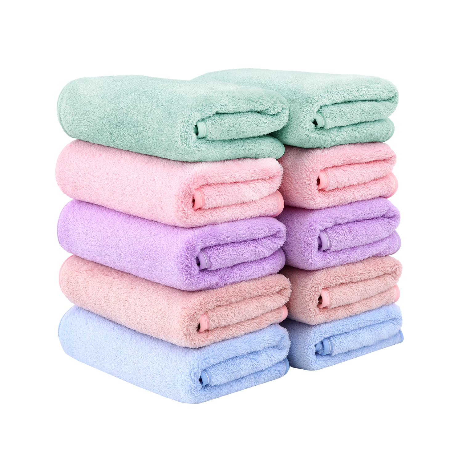 Etech フェイスタオル ホテル仕様 通気 高速吸水 マイクロファイバー 10枚セット 肌に優しい ふわふわ 柔らか肌触り 耐久性 無地 (5色)