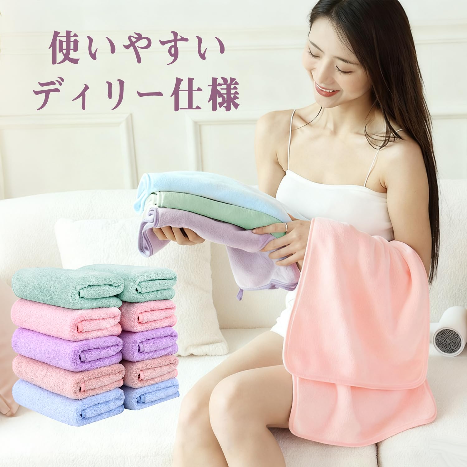 フェイスタオル マイクロファイバー 大判 35X75cm ホテル仕様 タオル ふわふわ 吸水 速乾 耐久性 10枚セット (ホワイト)