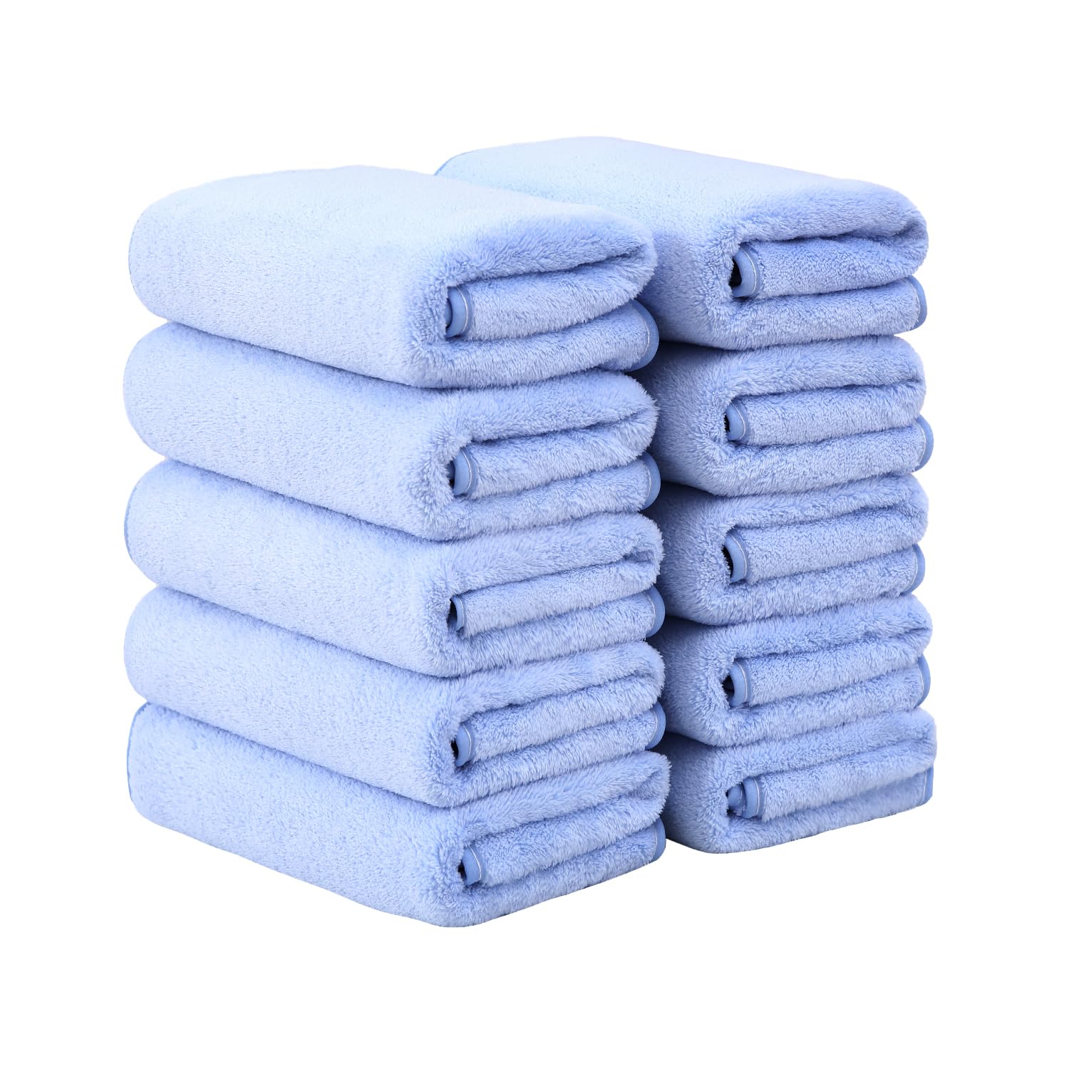 フェイスタオル マイクロファイバー 10枚組 35×75cm フワフワ 吸水 速乾 耐久性 ホテル仕様 家庭用 業務用 サロン エステ タオル (スカイブルー)