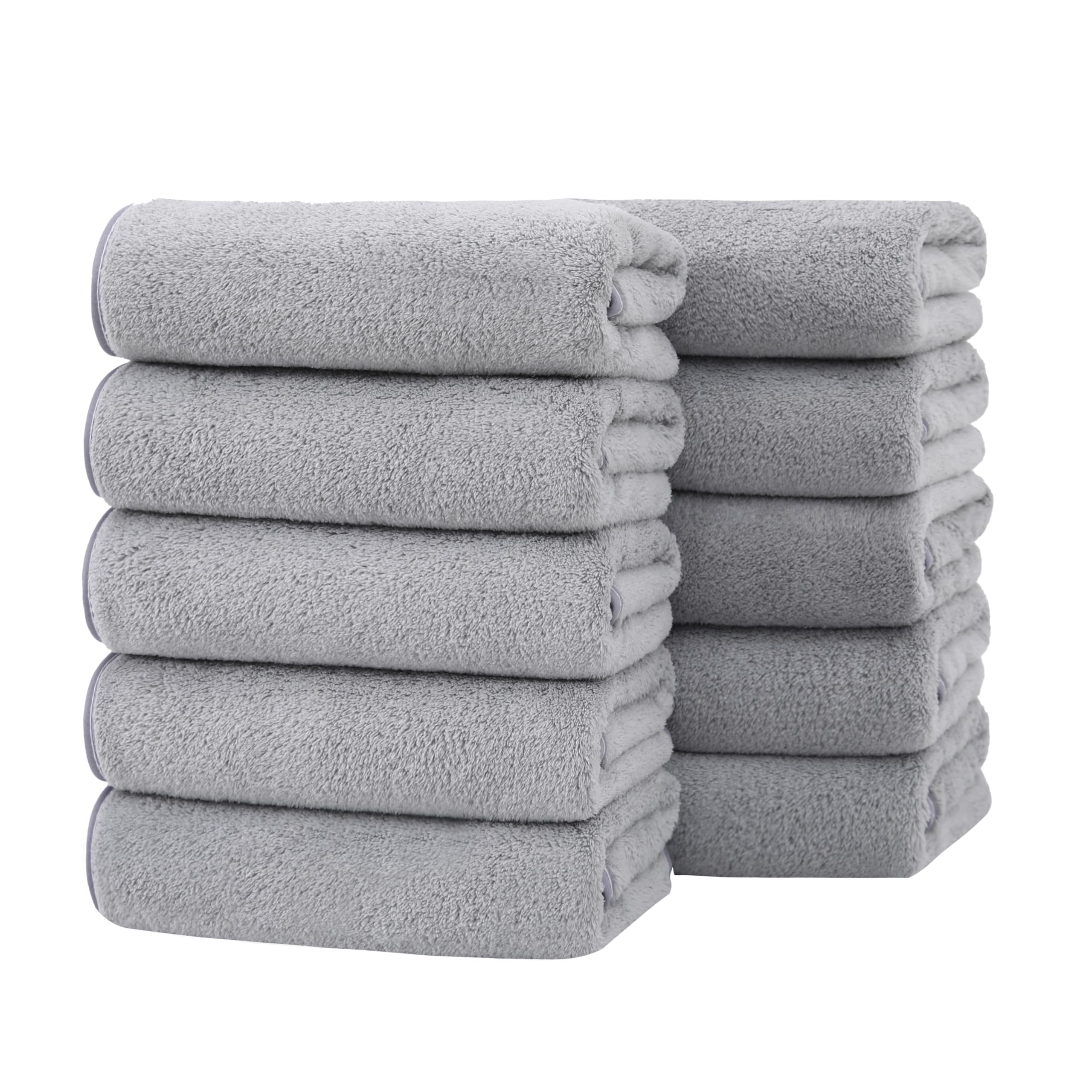 フェイスタオル 10枚セット マイクロファイバー タオル ホテル仕様 35X75cm ふわふわ 吸水 速乾 耐久性 家庭用 サロン ジム サウナ バス用品 業務用 (シルバーグレー)