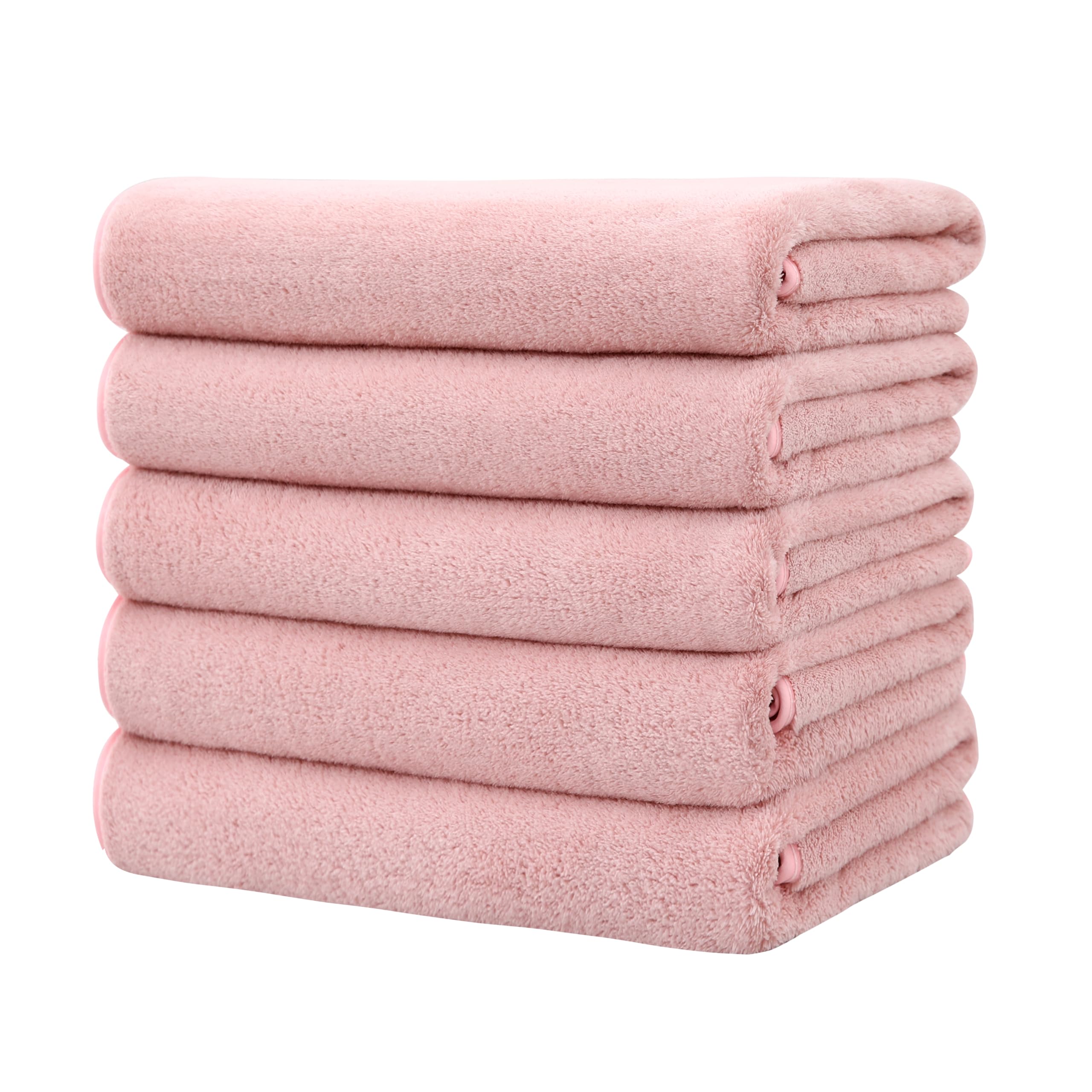 バスタオル 大判 ホテル仕様 タオル マイクロファイバー 5枚セット ふわふわ 吸水 速乾 耐久性 家庭用 サロン ジム サウナ バス用品 業務用 (ピンク)