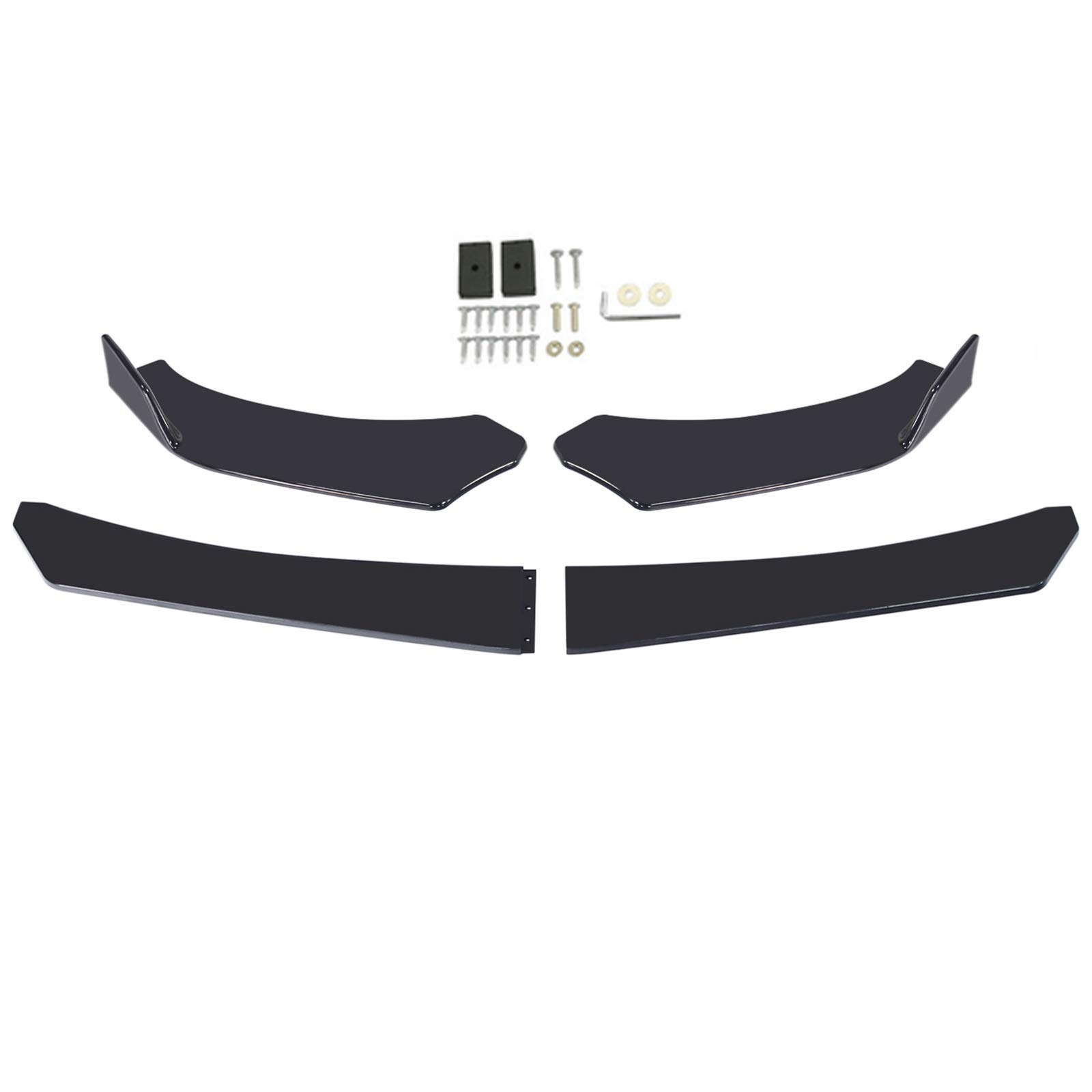 Bruce & Shark 4枚 車種汎用 フロントバンパー リップ ボディキット スポイラー フロントバンパー スポイラー 傷防止 ABS製 BMW ベンツ マツダ GMCなどに汎用 グロスブラック