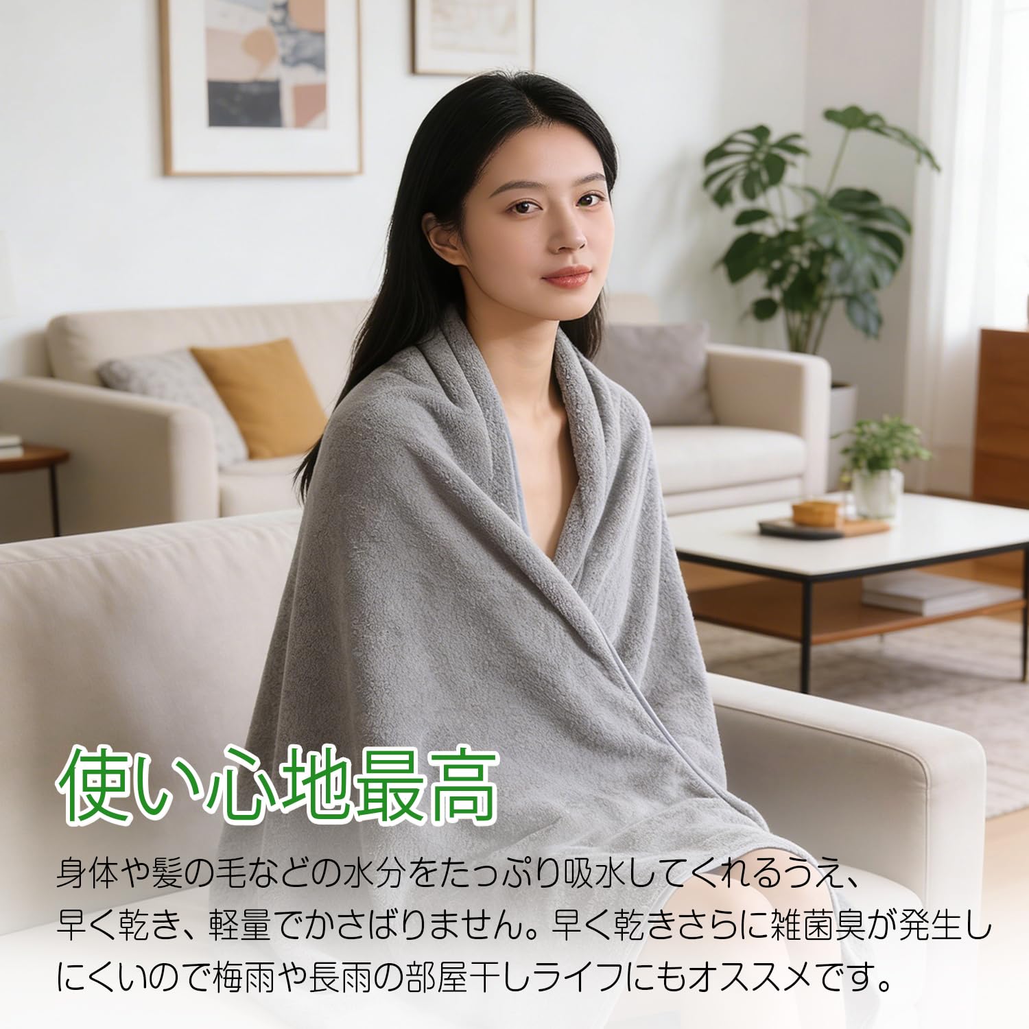 【TooTooLong 超吸水バスタオル、キャンディー絨、70x140cm】4色4枚セット、速乾性、ふわふわ肌触り、ホテル仕様 (グレー, 4枚組/バスタオル)