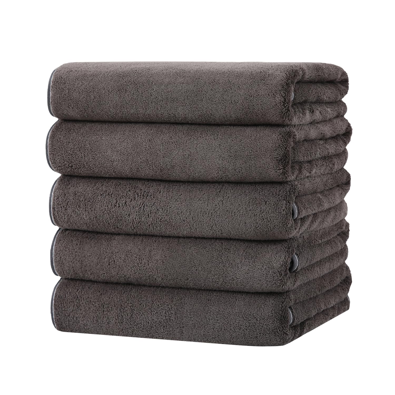 バスタオル マイクロファイバー 大判 5枚セット 吸水 60X120cm ふわふわ 柔らかい肌触り 速乾 耐久性 抗菌防臭 毛羽落ちしない ホテル仕様 お風呂上がり 家庭用 業務用 (ブラック)
