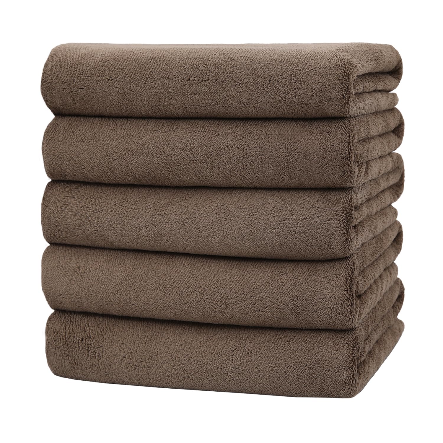 バスタオル マイクロファイバー 大判 5枚セット 60×120cm タオル ふわふわ 肌触り 瞬間吸水 速乾 通気 耐久性 抗菌 防臭 人気 家庭用 業務用 (ブラウン)